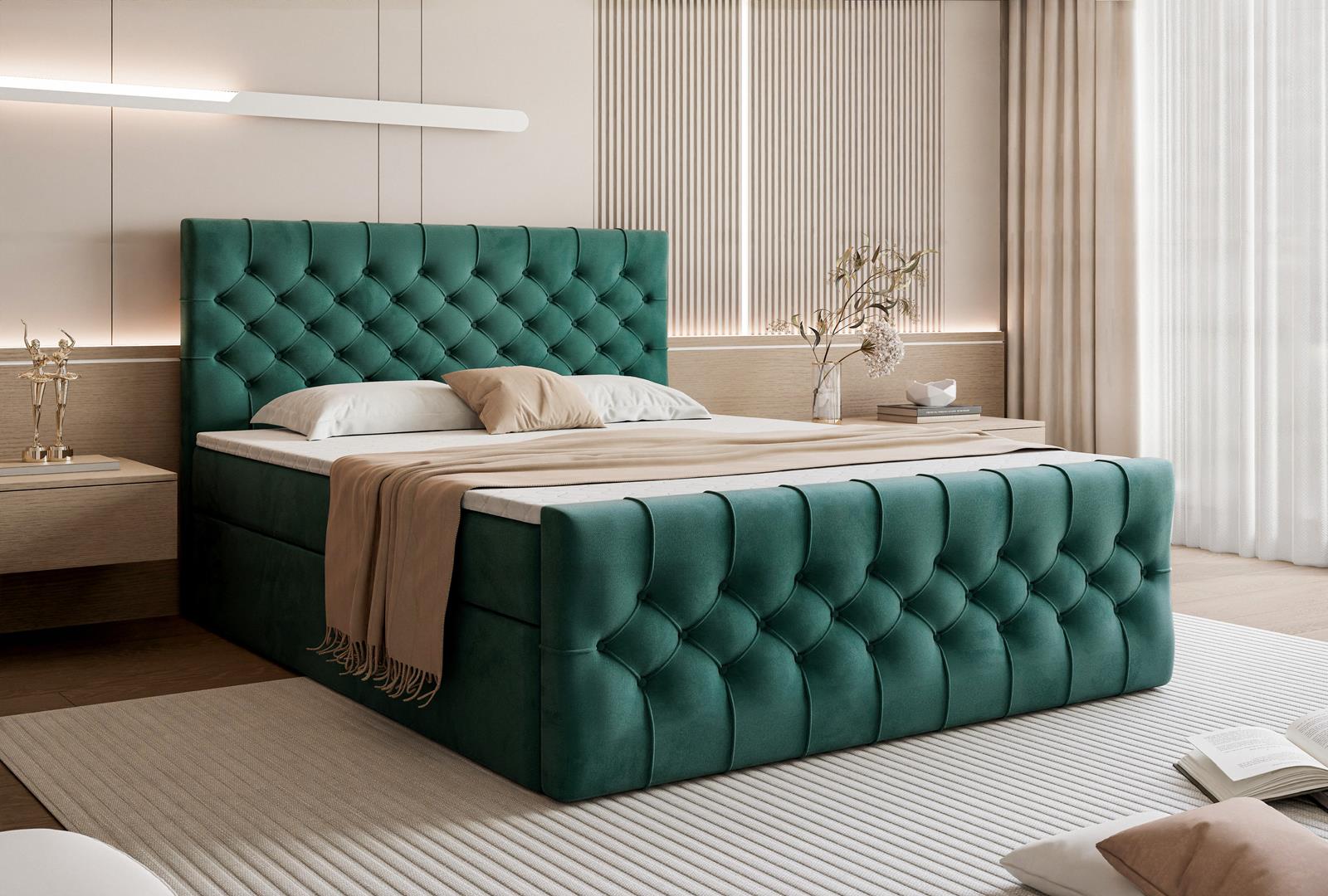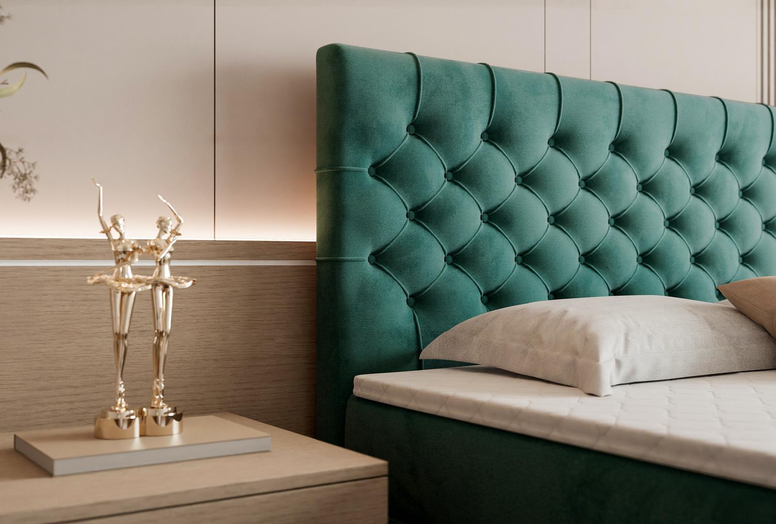 Łóżko z pikowanym zagłówkiem MIAMI ZIELONE Z TOPPEREM