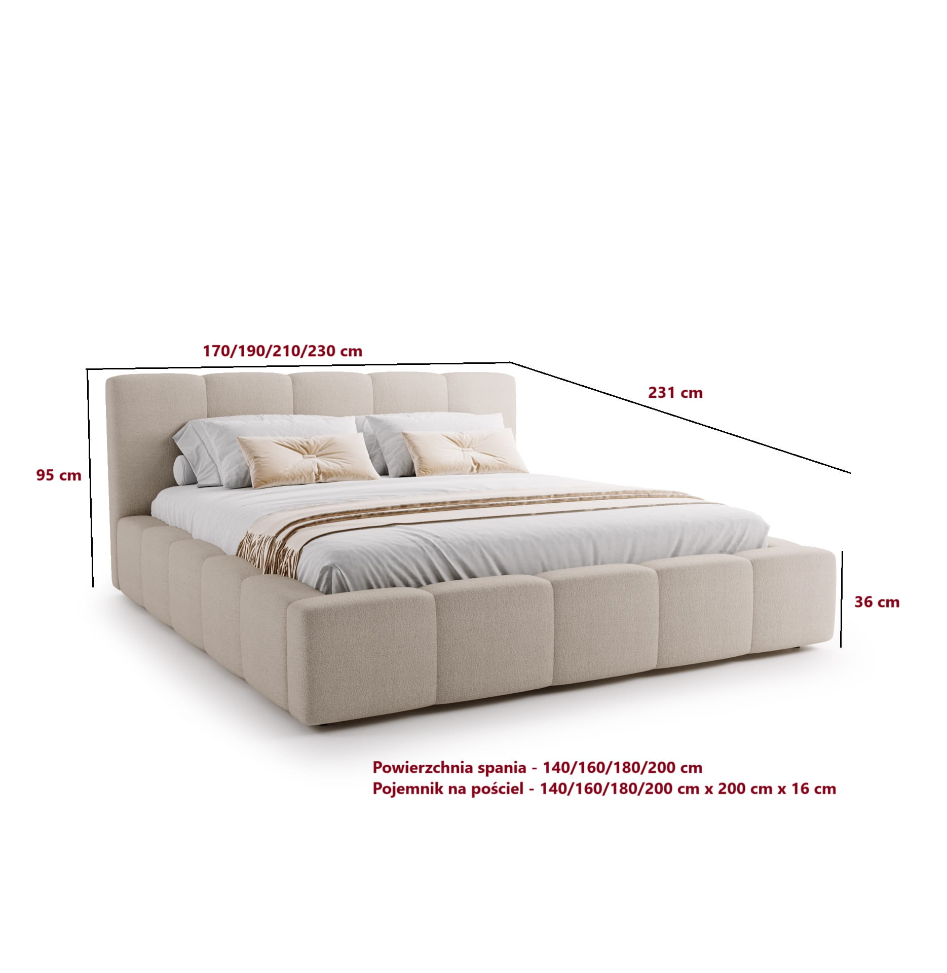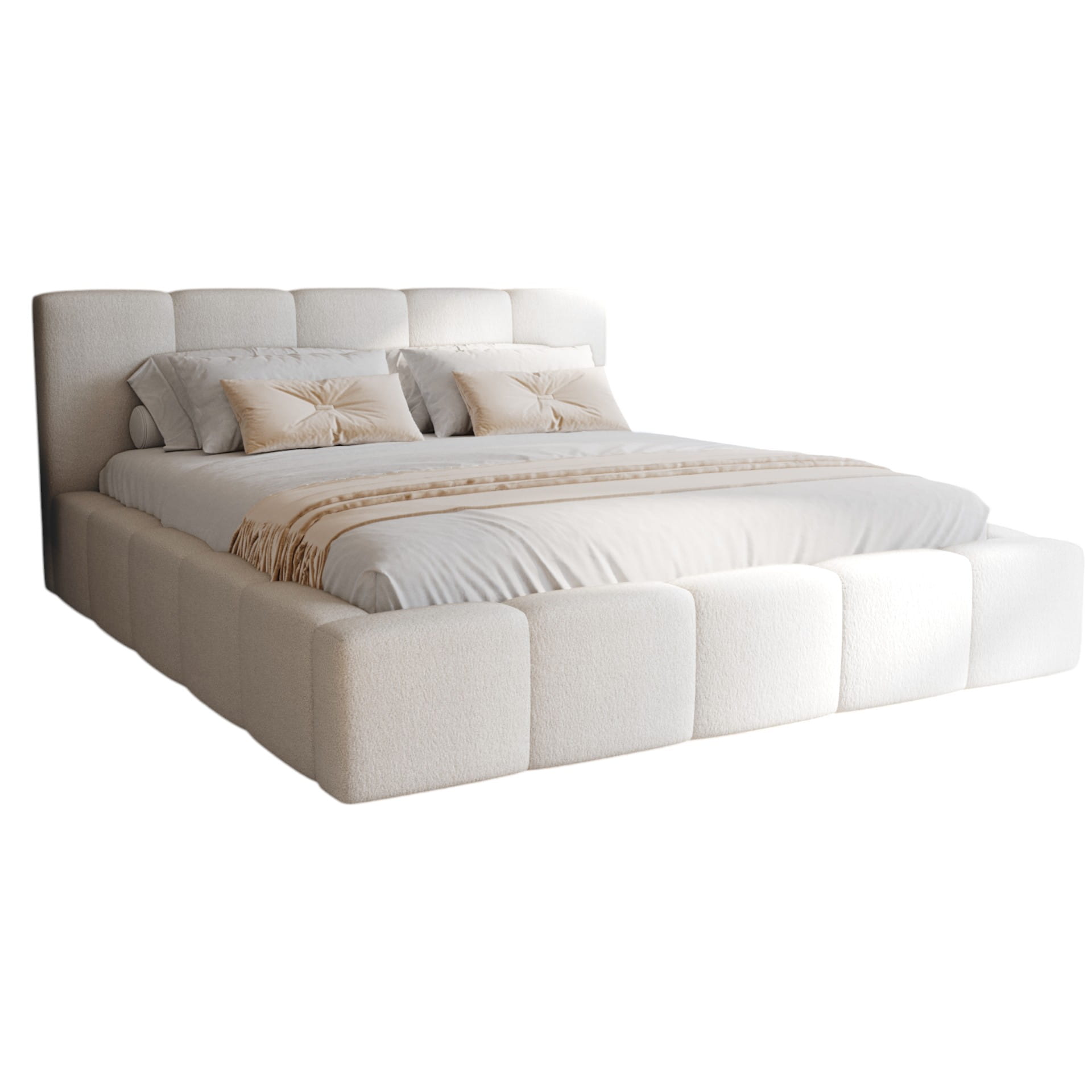 Luksusowe białe łóżko boucle małżeńskie z pojemnikiem NOVS