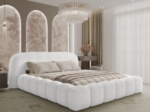 Łóżko do sypialni z miękką tapicerką typu baranek