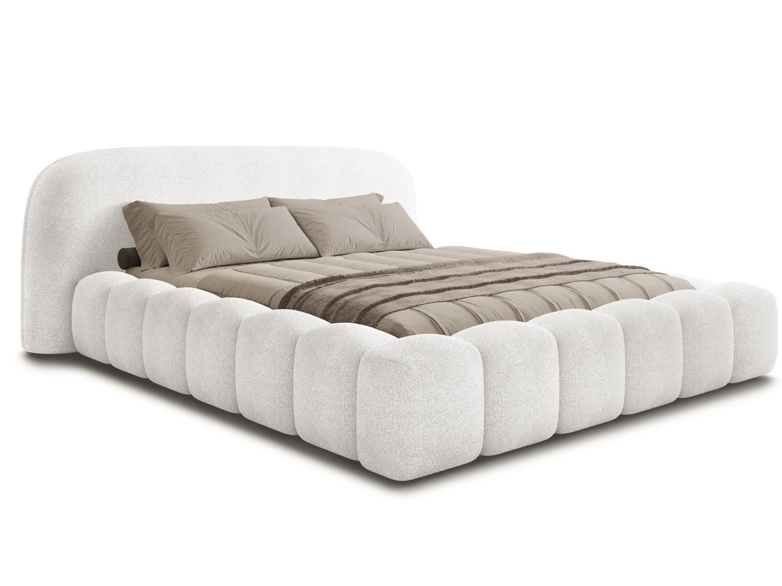 Luksusowe białe łóżko tapicerowane z zaokrąglonym zagłówkiem OMBI