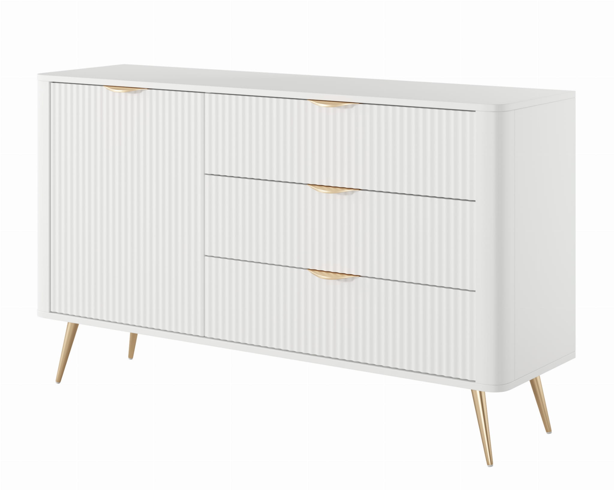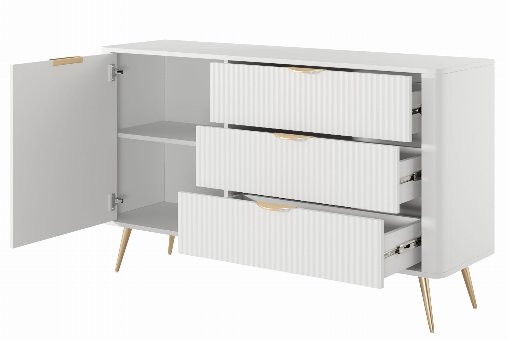Mała biała komoda do salonu z ryflowanym frontem BELLO