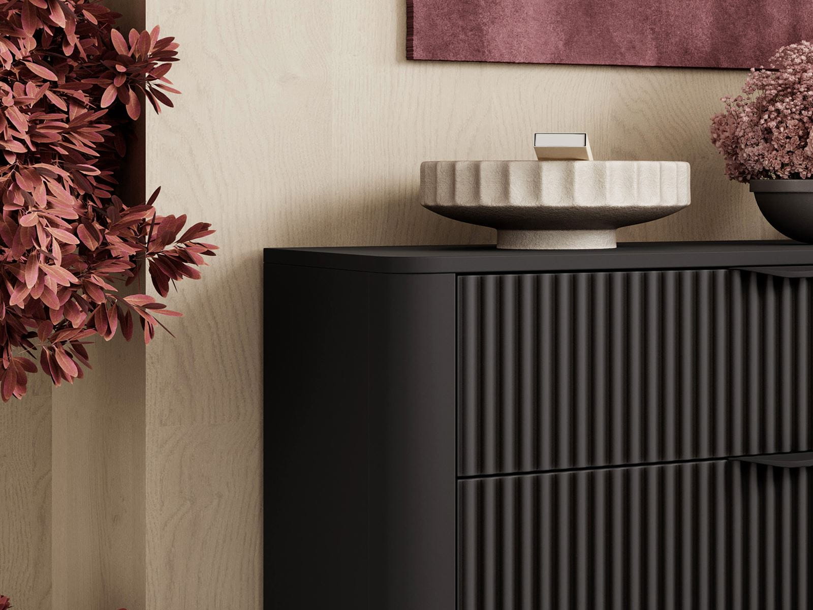 Mała komoda z ryflowanym frontem BELLO CZARNY