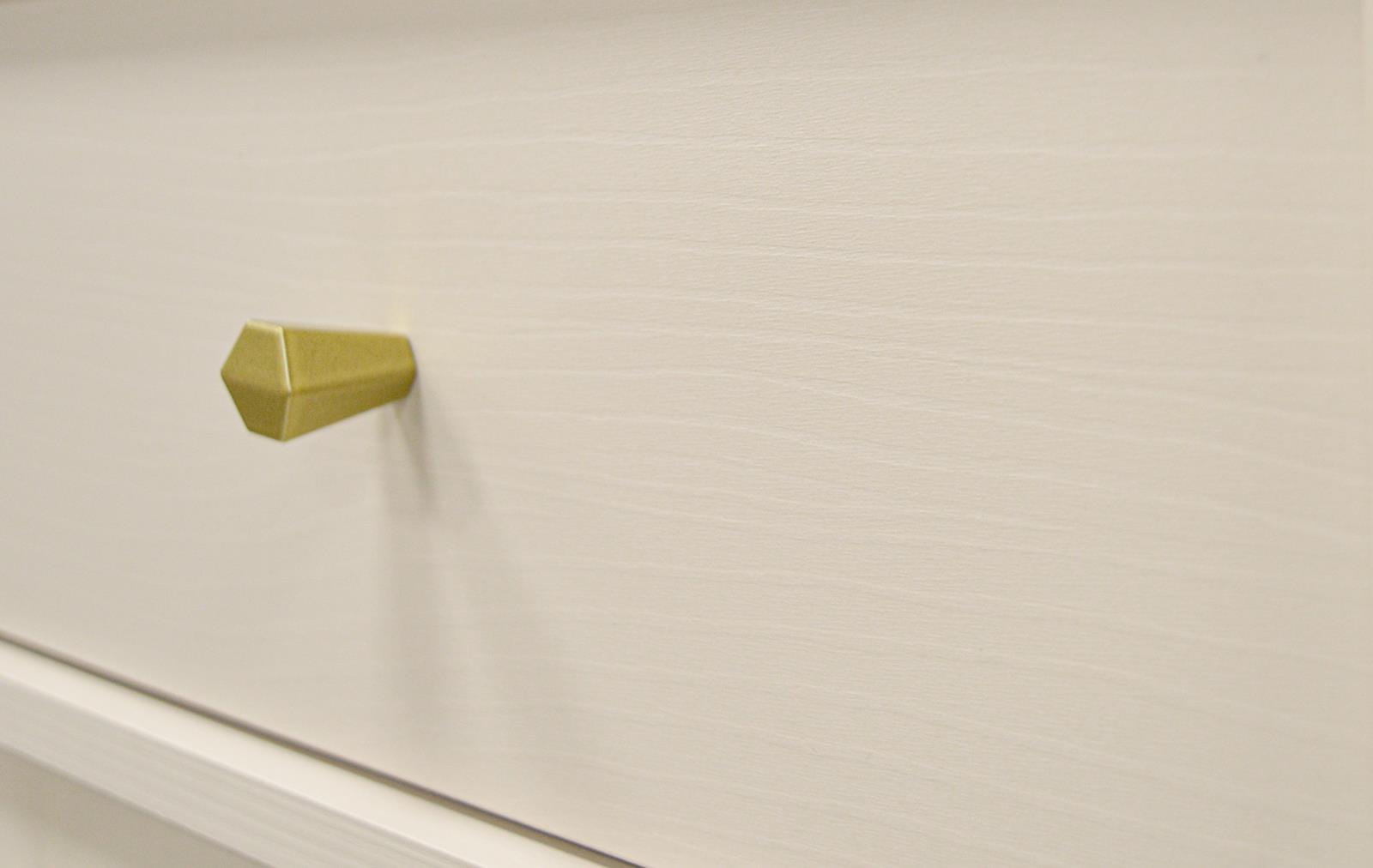 Minimalistyczna beżowa komoda ze złotymi elementami NOBIS