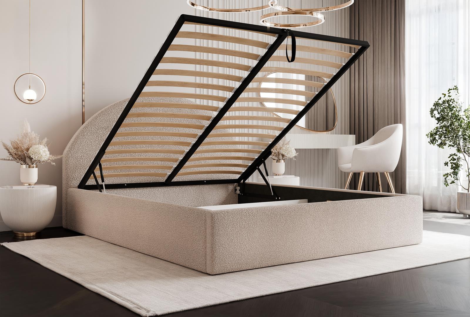 Minimalistyczne łóżko boucle beżowe PAPHO