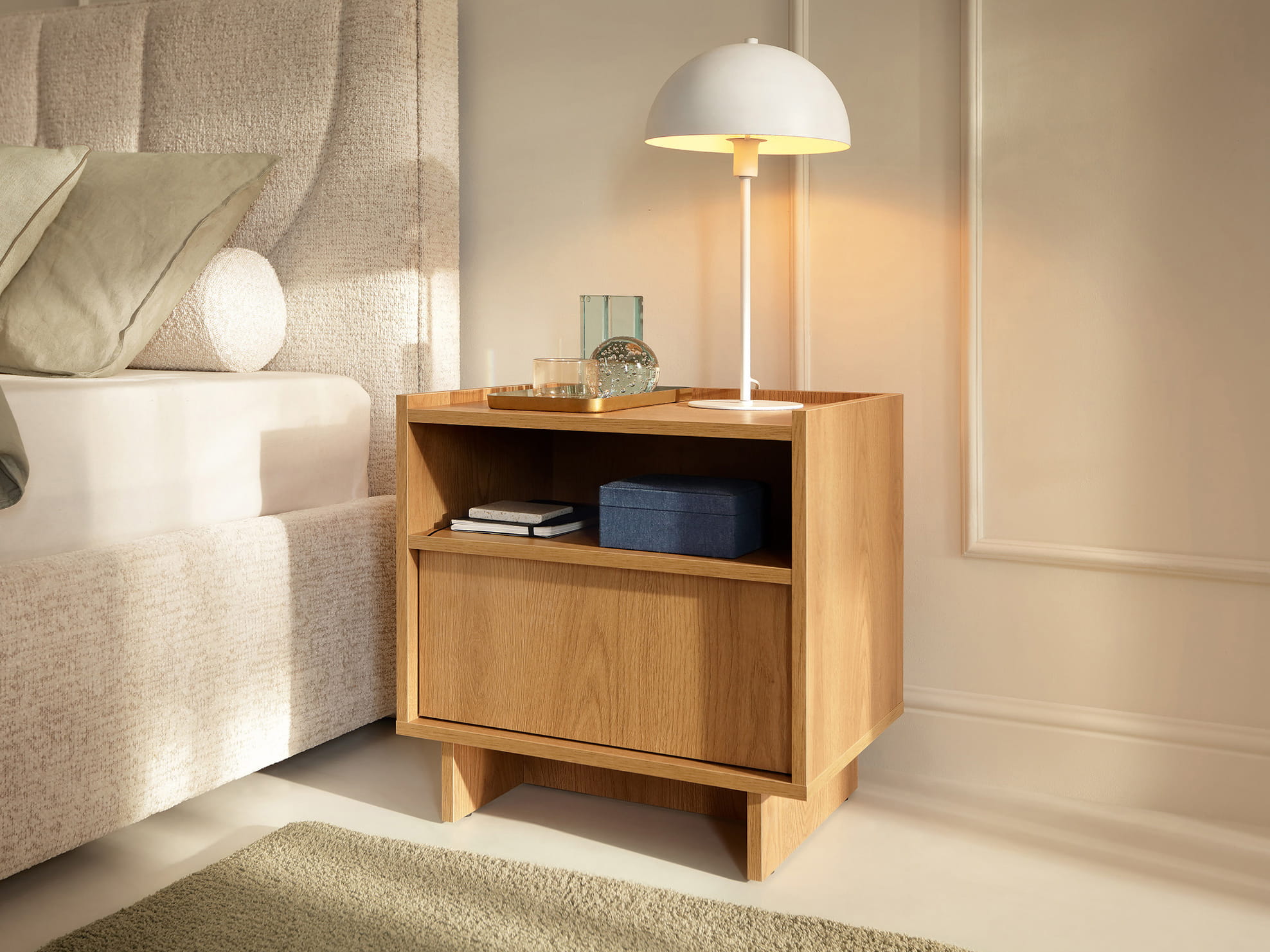 Minimalistyczny stolik nocny do sypialni japandi KELLOS