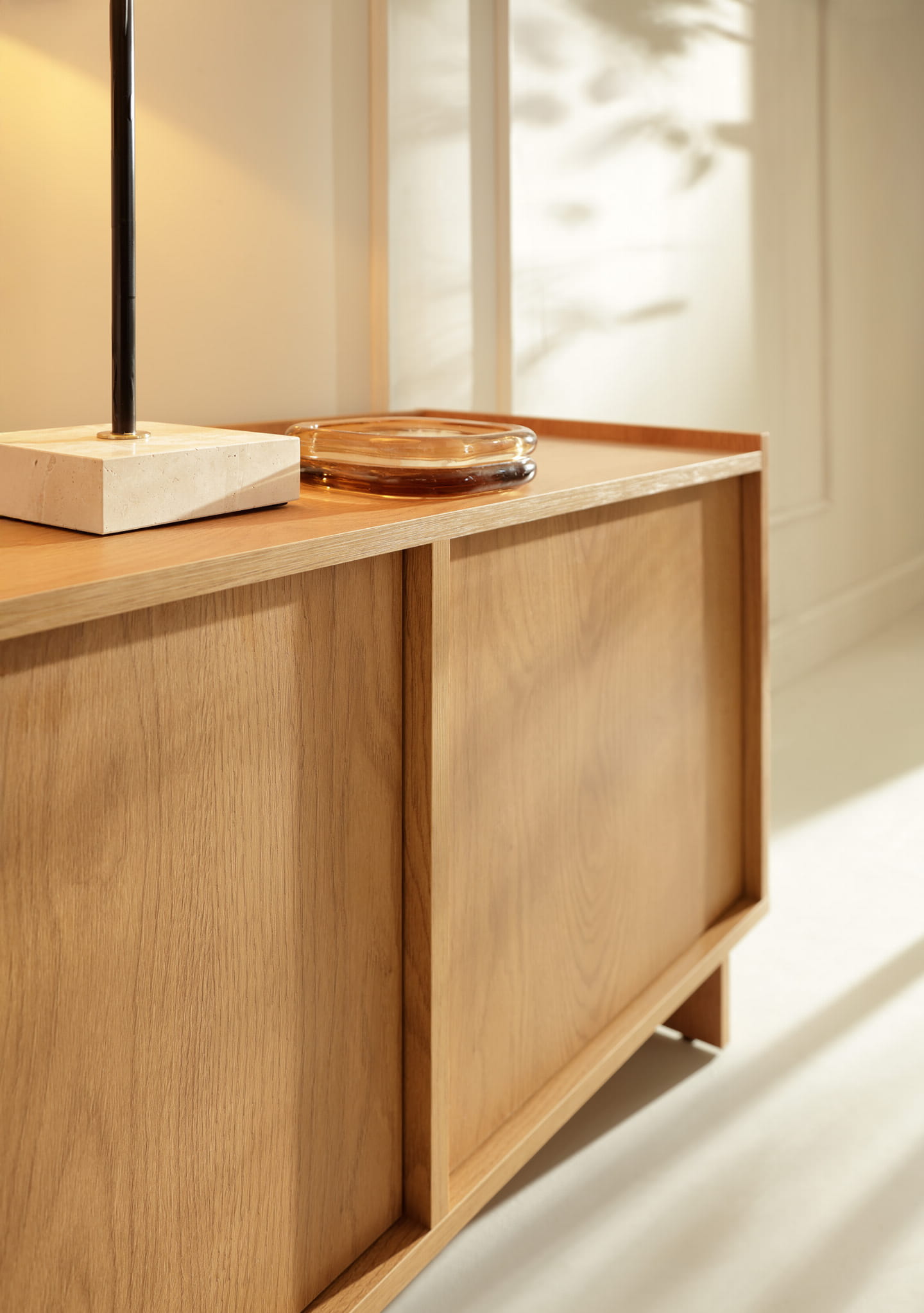 Naturalny odcień karmelowego dębu pięknie podkreśla subtelny rysunek drewna, dzięki czemu mebel prezentuje się niezwykle przytulnie i ponadczasowo. To element wyposażenia, który z łatwością dopasuje się zarówno do nowoczesnych aranżacji, jak i wnętrz inspirowanych stylem Japandi, skandynawskim czy minimalistycznym.