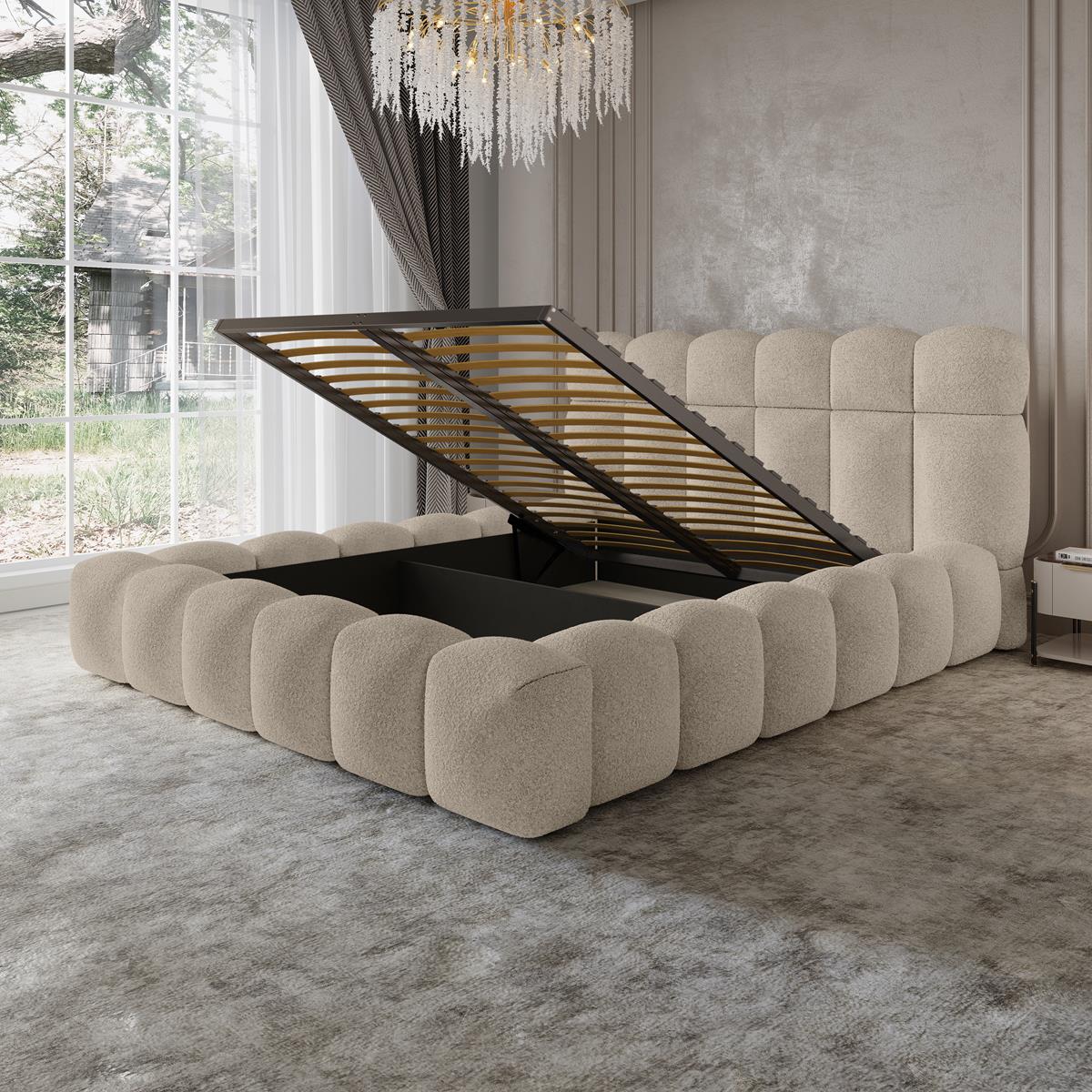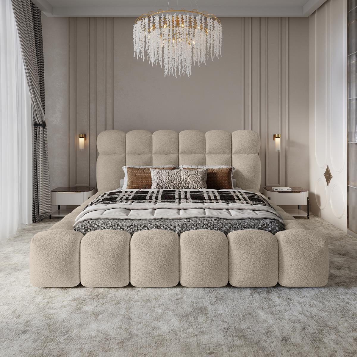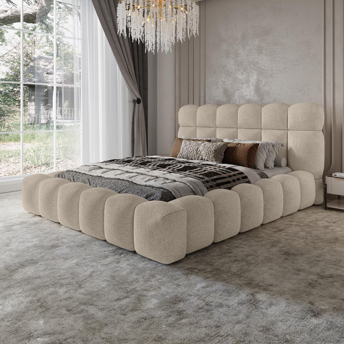 Łóżko chmurka beżowe boucle - Elegancja i praktyczność