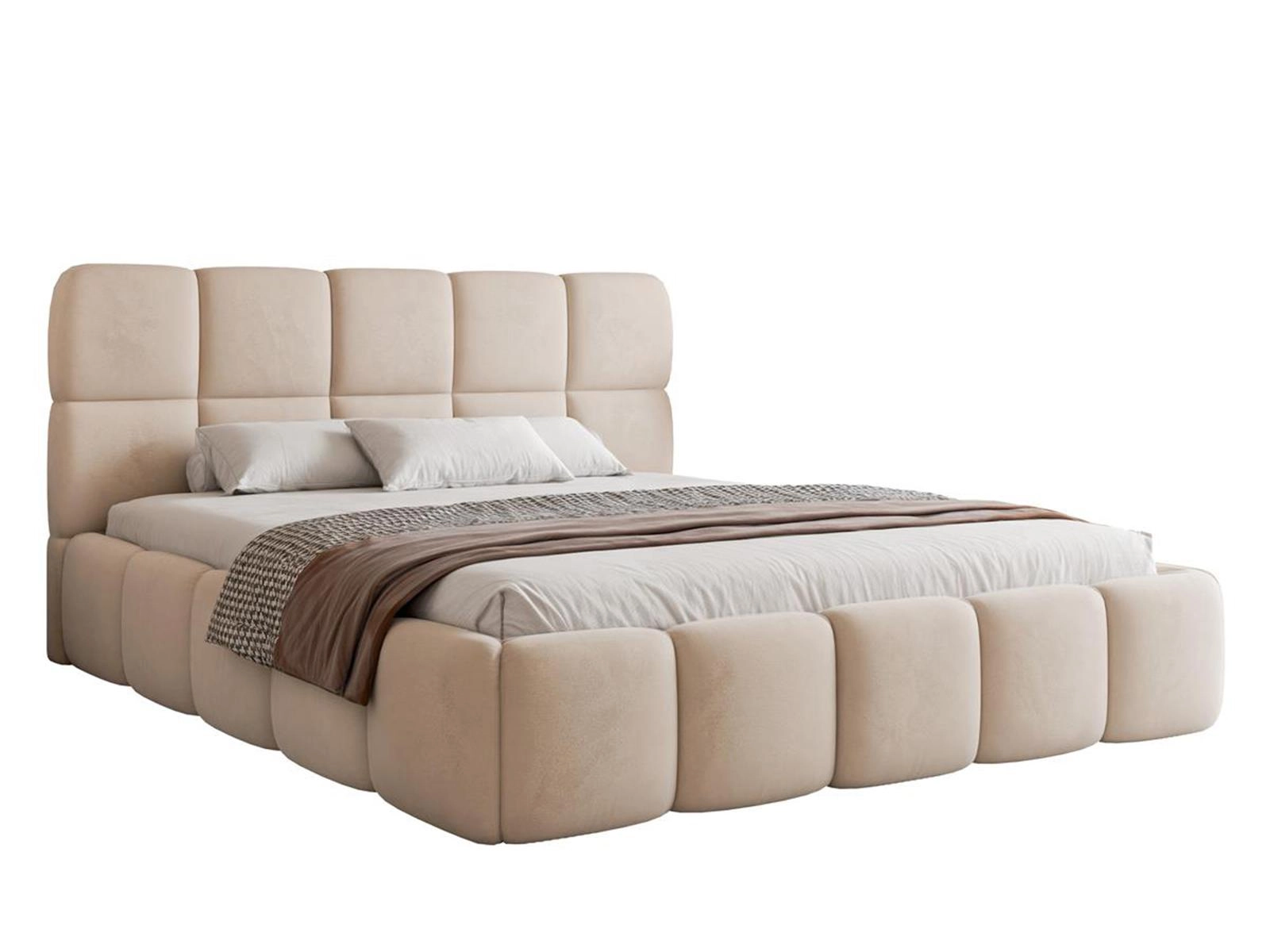 Modne kremowe łóżko tapicerowane velvet MICO