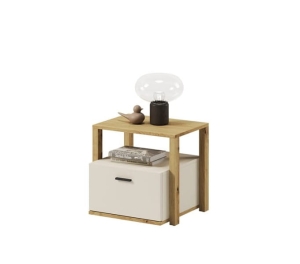 Modny beżowy stolik nocny dziecięcy z elementem drewna dąb artisan LAGOS