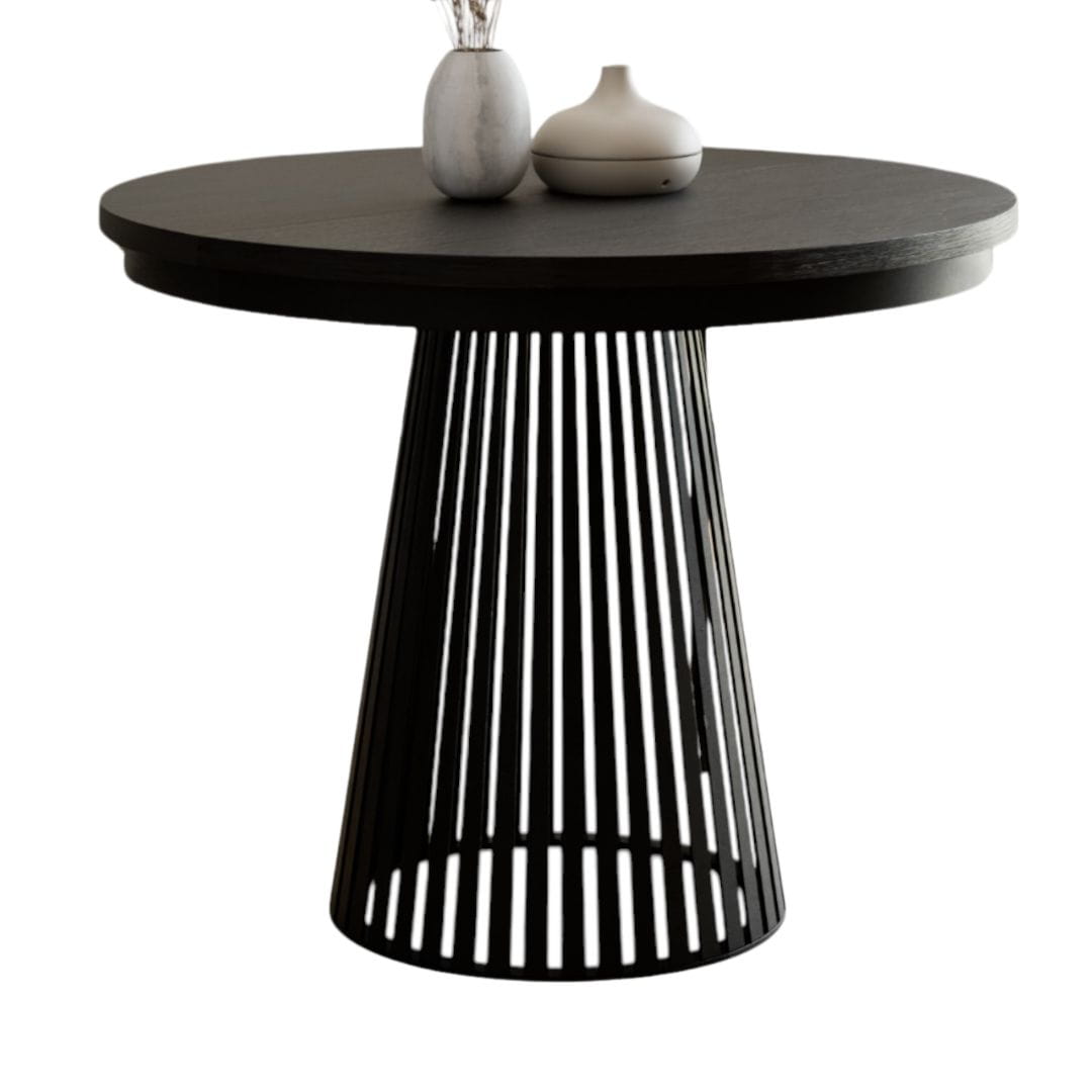 Modny czarny stół z ryflowaną podstawą rozkładany DAST 100-180