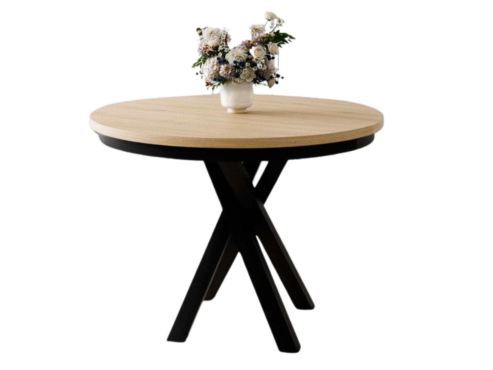 Modny stół do salonu okrągły noga krzyżak LOFTO DĄB HIKORA