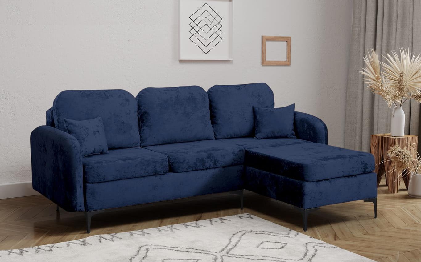 Narożnik granatowy do salonu L funkcja spania BELLA