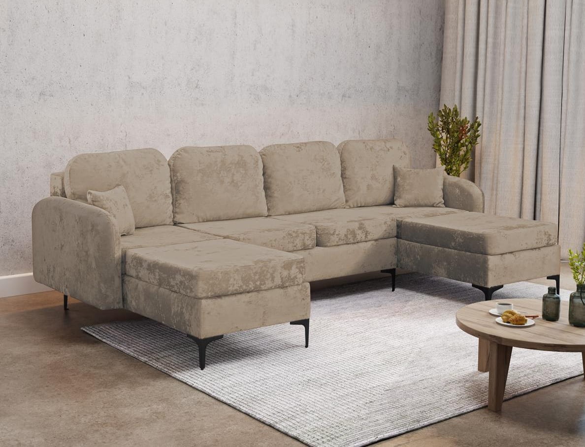Narożnik BELLA to połączenie nowoczesnego designu z funkcjonalnością, stworzone z myślą o wygodzie i estetyce. Doskonale sprawdzi się w salonie, dodając wnętrzu elegancji oraz zapewniając praktyczne rozwiązania na co dzień. Co więcej wyróżnia się nowoczesnym wyglądem, który idealnie komponuje się z aktualnymi trendami wnętrzarskimi. Obicie z wysokiej jakości tkaniny welurowej zapewnia subtelną teksturę i miękkość w dotyku. Eleganckie przeszycia i staranne wykonanie nadają jej ekskluzywny charakter, czyniąc ją idealnym wyborem do każdego wnętrza – od klasycznych po nowoczesne aranżacje.