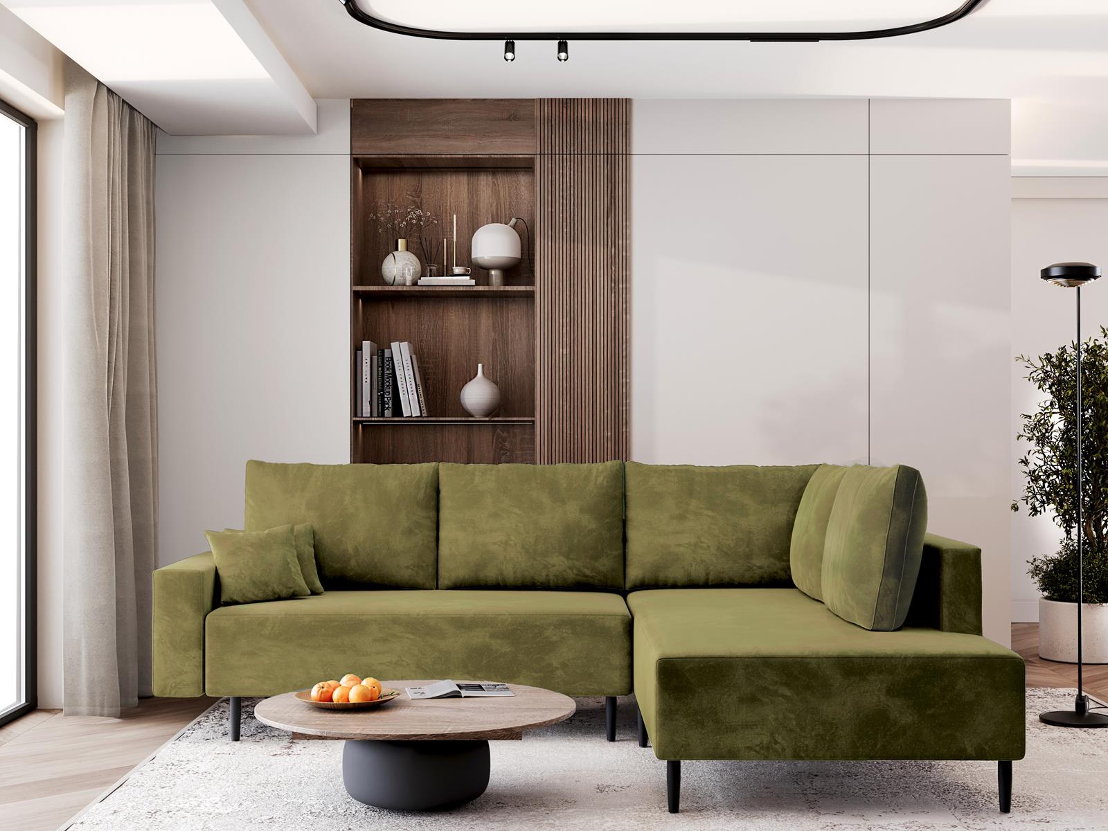 Narożnik oliwkowy z funkcją spania elegancki BLAIR