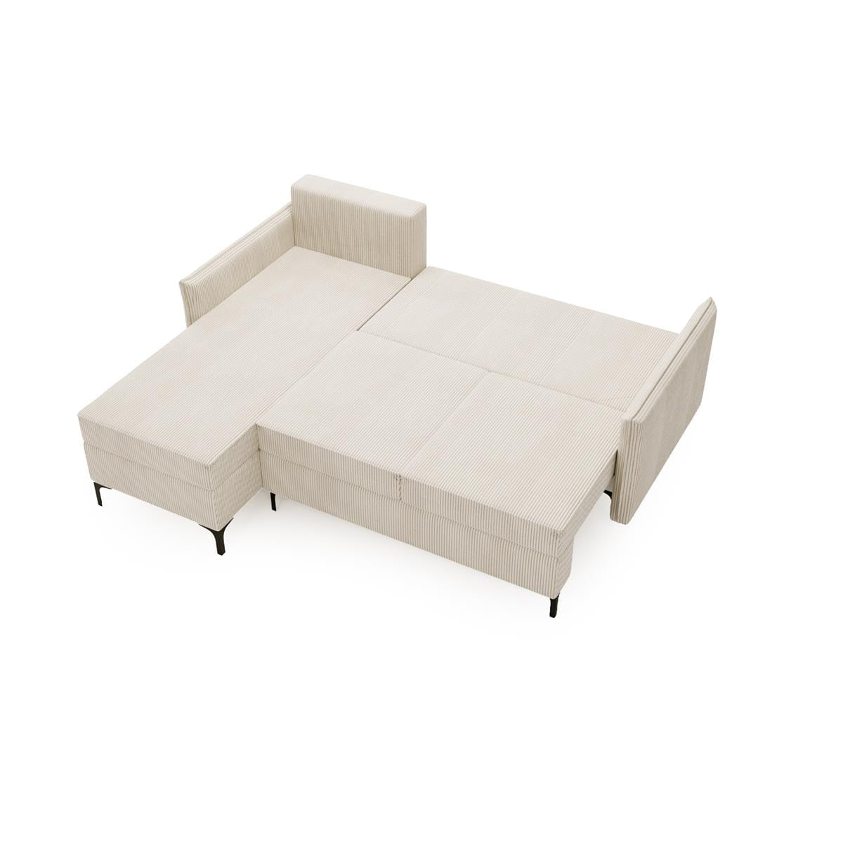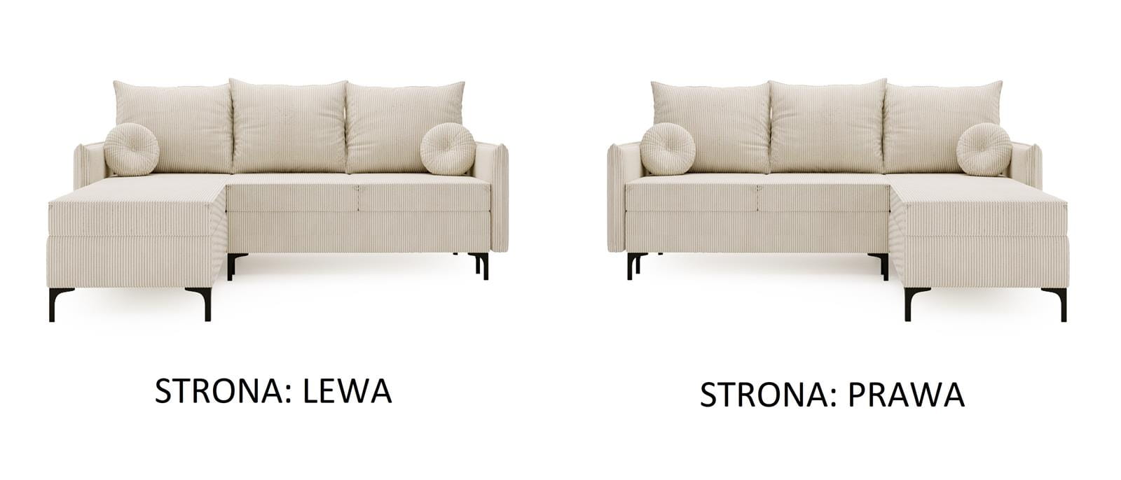 - Funkcja spania: Narożnik można łatwo rozłożyć, uzyskując wygodną powierzchnię do spania o wymiarach 125x200cm, co sprawia, że świetnie sprawdzi się także jako łóżko dla gości.