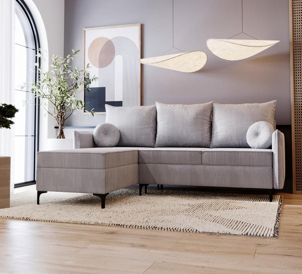 Narożnik sztruksowy z funkcją spania do salonu LEO SZARY