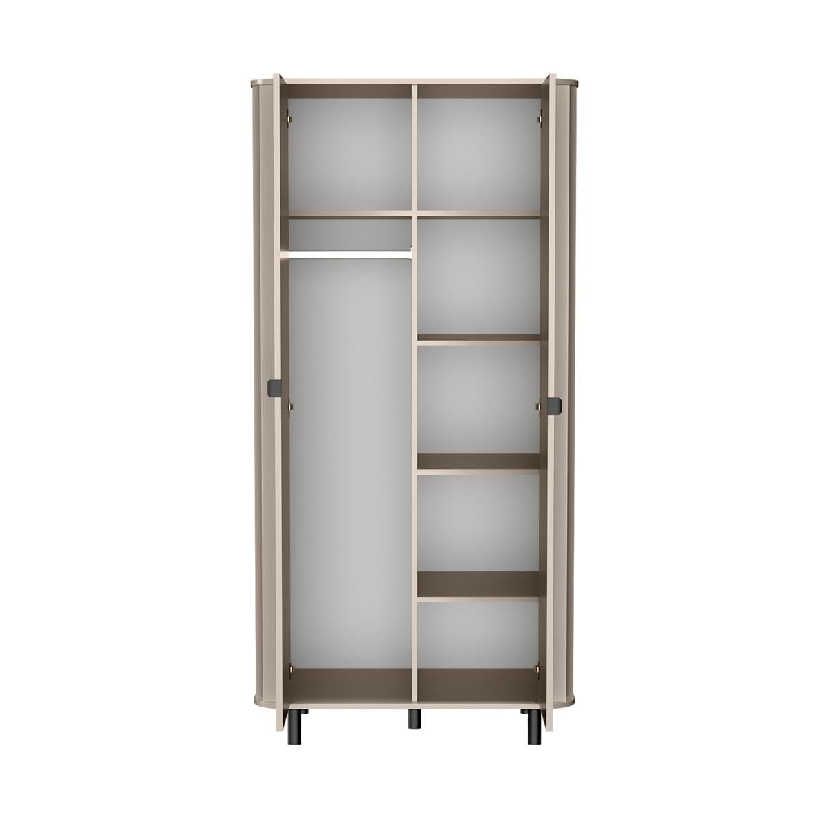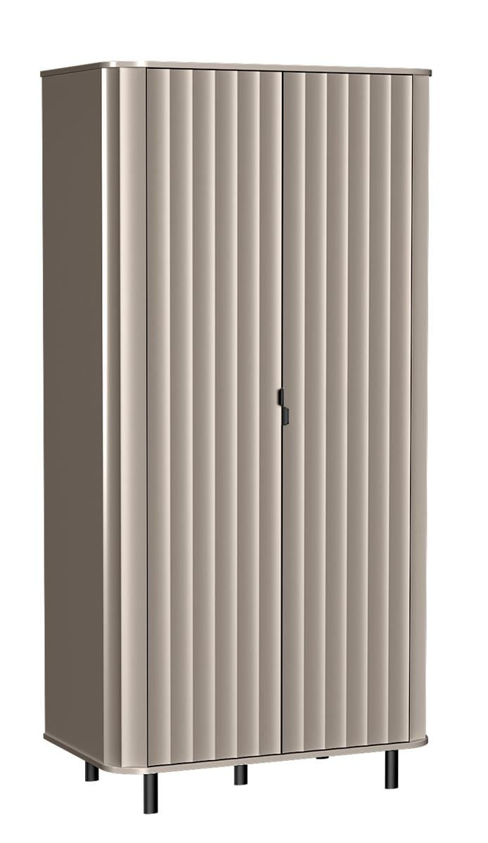 Wprowadź do swojego wnętrza odrobinę luksusu i nowoczesności dzięki eleganckiej szafie w modnym odcieniu beżu. Ta nowoczesna szafa z lamelami to idealne rozwiązanie do przechowywania ubrań, tekstyliów oraz domowych akcesoriów. Jej uniwersalny design sprawdzi się zarówno w sypialni, salonie, garderobie, jak i w przedpokoju.Drzwi z pionowymi lamelami nie tylko przyciągają wzrok, ale także wpisują się w aktualne trendy wnętrzarskie. Za nimi kryje się pojemne wnętrze z półkami i drążkiem na wieszaki, co pozwala na wygodne i uporządkowane przechowywanie odzieży. Ergonomiczne uchwyty w kolorze czarnym dodają kontrastu i elegancji, podkreślając minimalistyczny styl mebla.