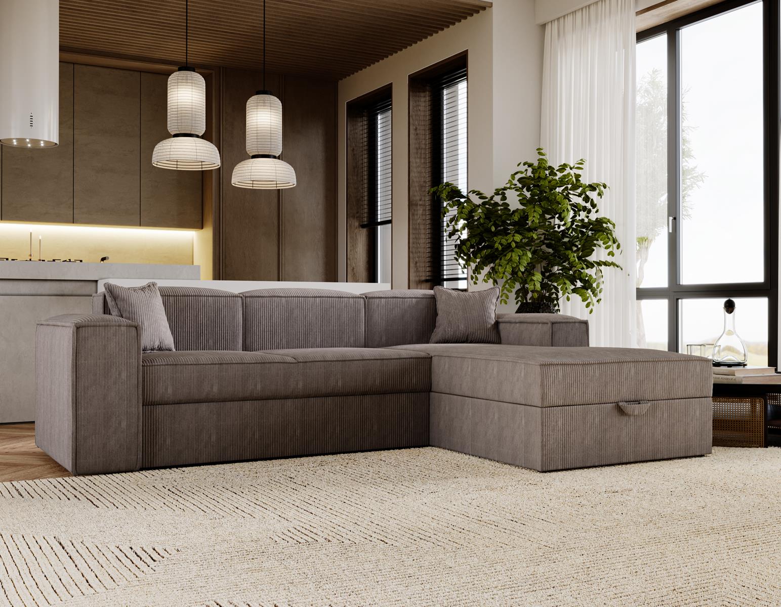 Nowoczesny brązowy narożnik sztruksowy do salonu SANTO