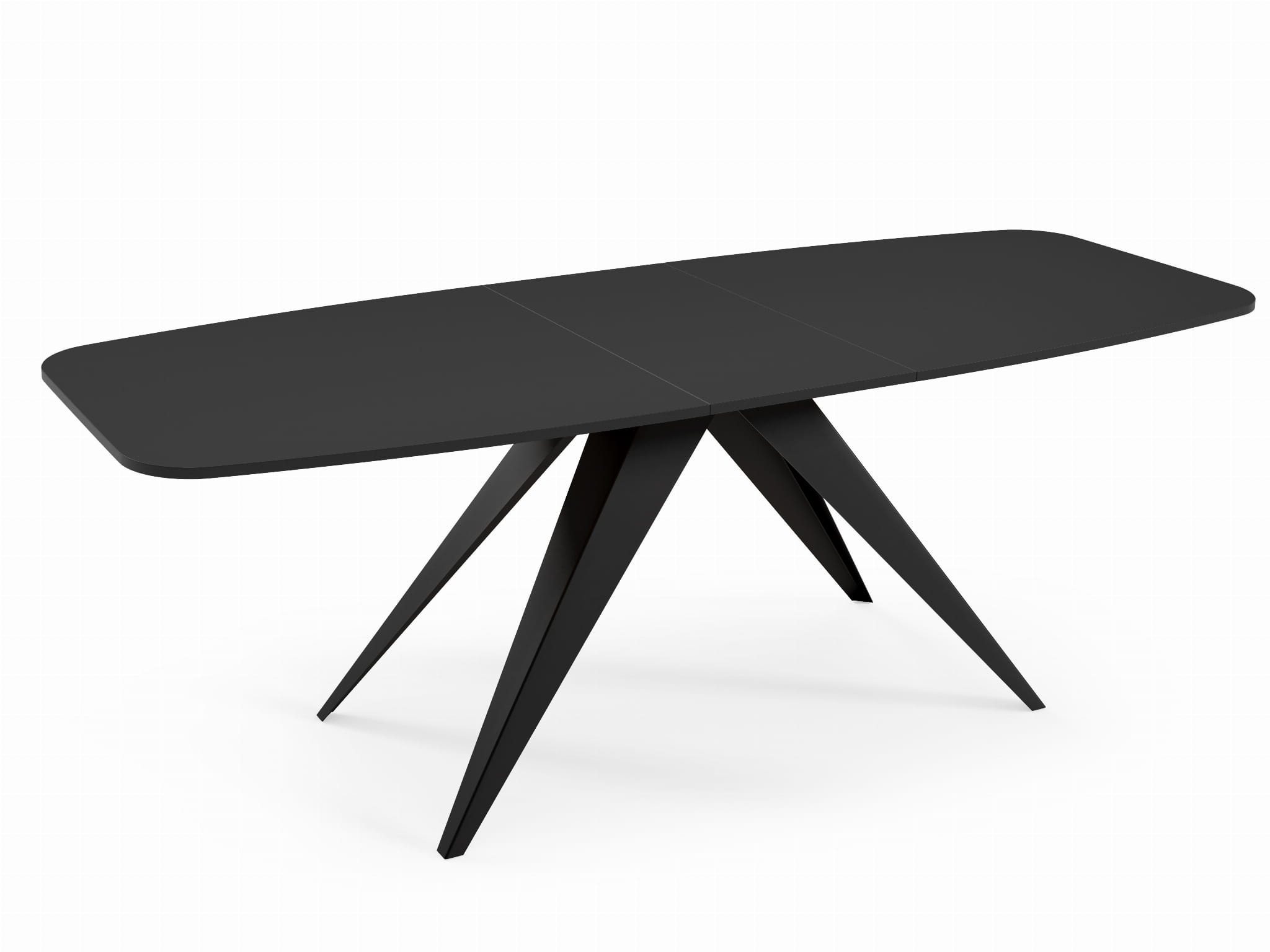 Blat wykonany został z wysokiej jakości laminowanej płyty w eleganckim, czarnym kolorze - odpornej na uszkodzenia, wilgoć i łatwej do czyszczenia. Solidna krawędź PVC o grubości 2 mm dodatkowo zwiększa trwałość i chroni stół przed zniszczeniem. Stabilną podstawę stanowią masywne, rozchodzące się pod kątem metalowe nogi malowane proszkowo, które gwarantują stabilność i długowieczność mebla.