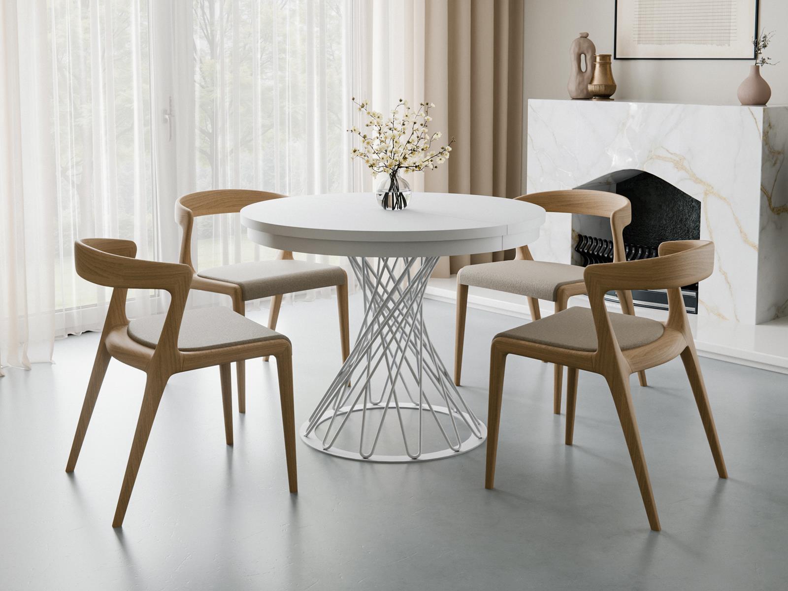 Stół LUKS w kolorze białym to połączenie minimalizmu, elegancji i funkcjonalności. Jego okrągły blat w kolorze śnieżnej bieli wprowadza do wnętrza lekkość i świeżość, idealnie wpisując się w nowoczesne aranżacje.