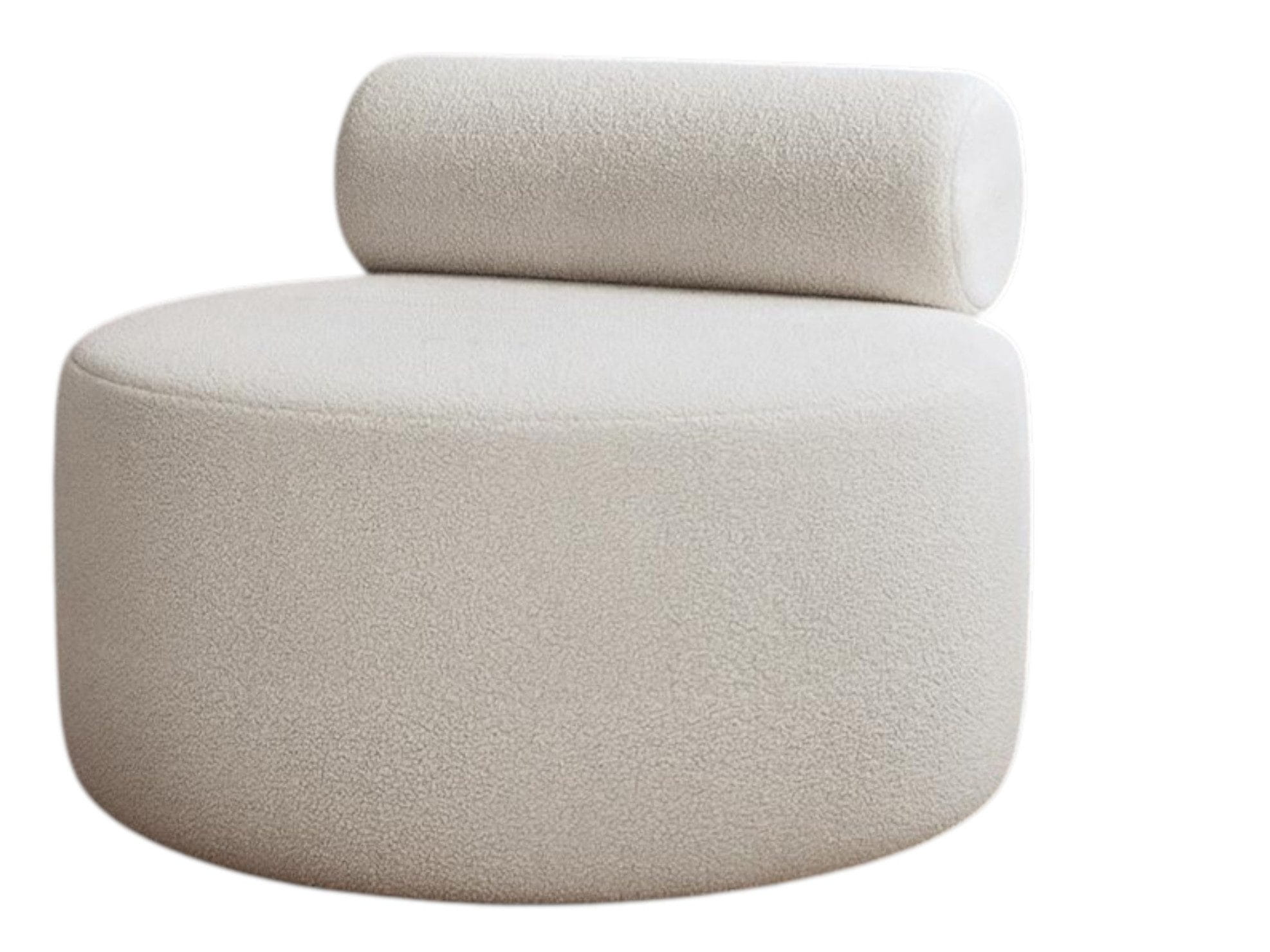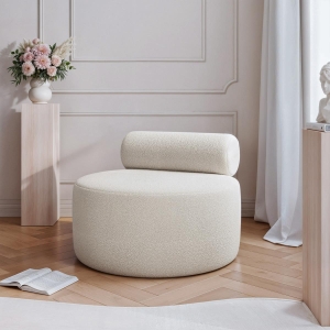 Okrągły fotel w jasnym odcieniu beżu bez podłokietników CLAUS