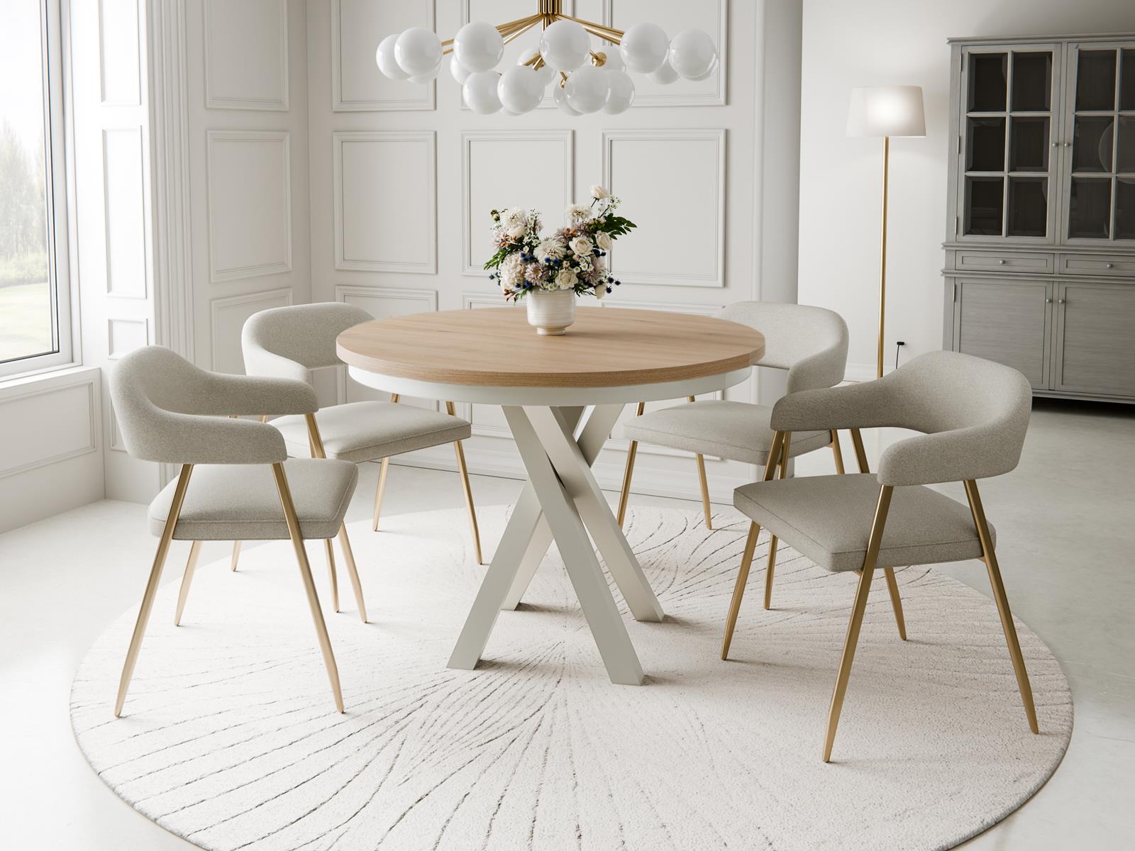 Okrągły stół do jadalni z funkcją rozkładania LOFTO DĄB HIKORA