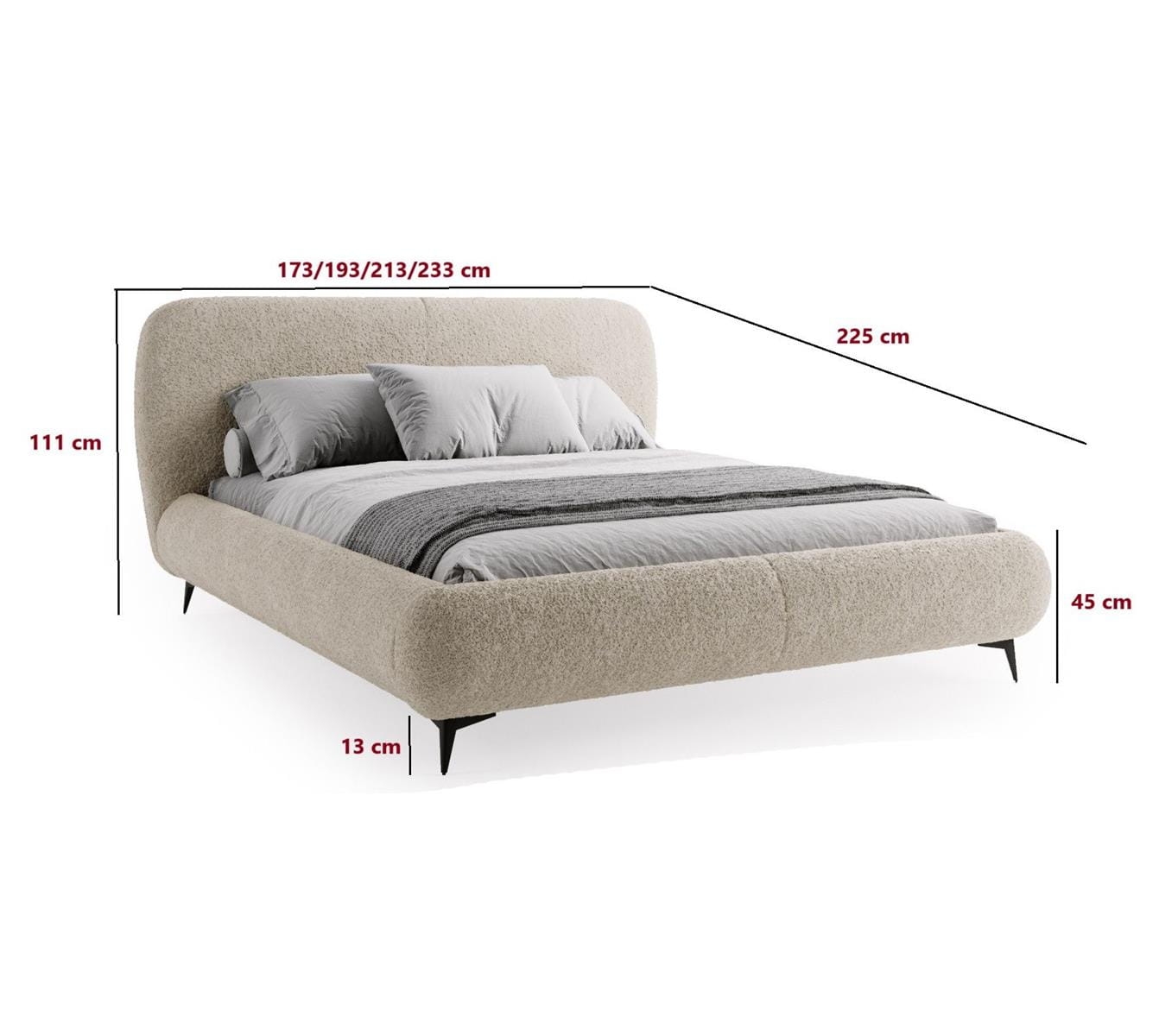 Oliwkowe łóżko w tkaninie boucle w stylu japandi MIA