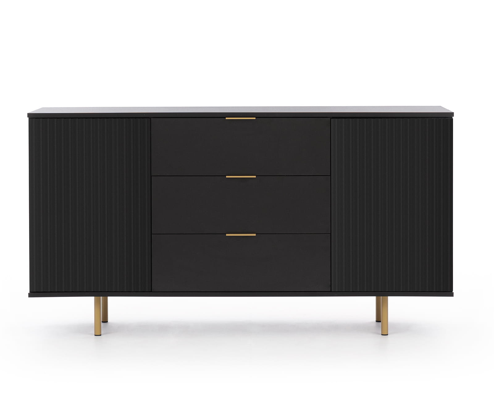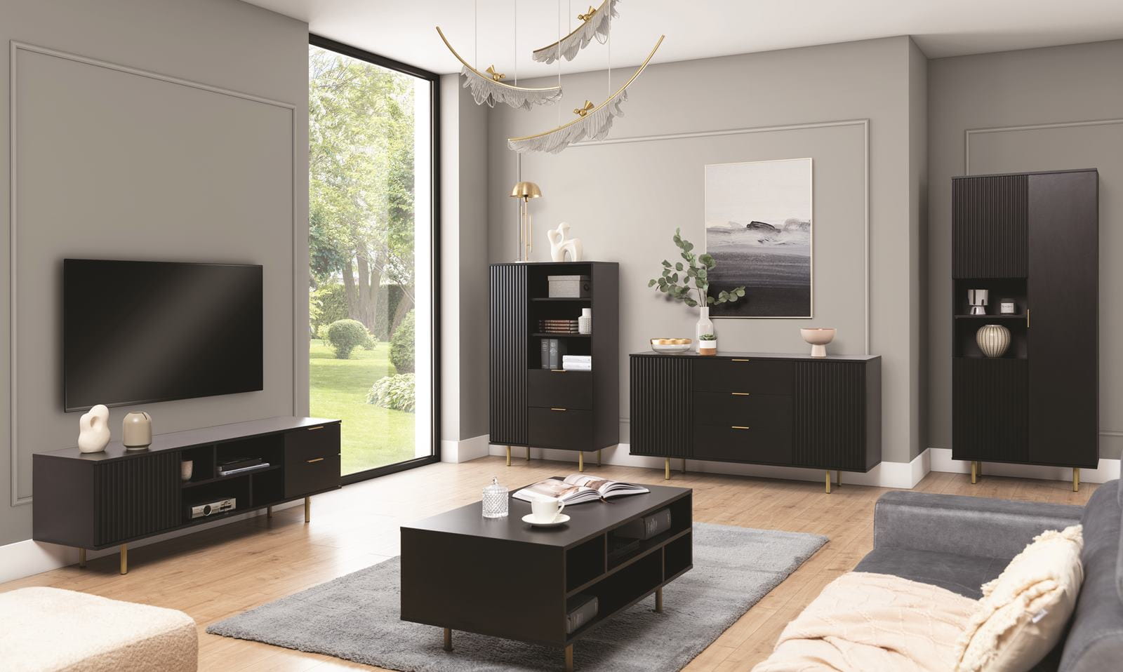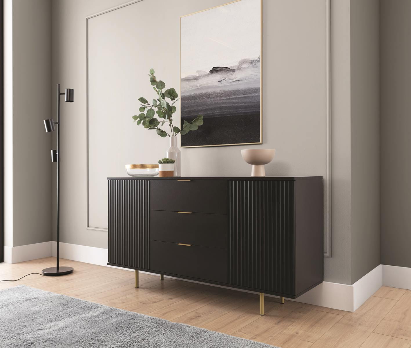 Czarna komoda do salonu z ryflowanym frontem CALO