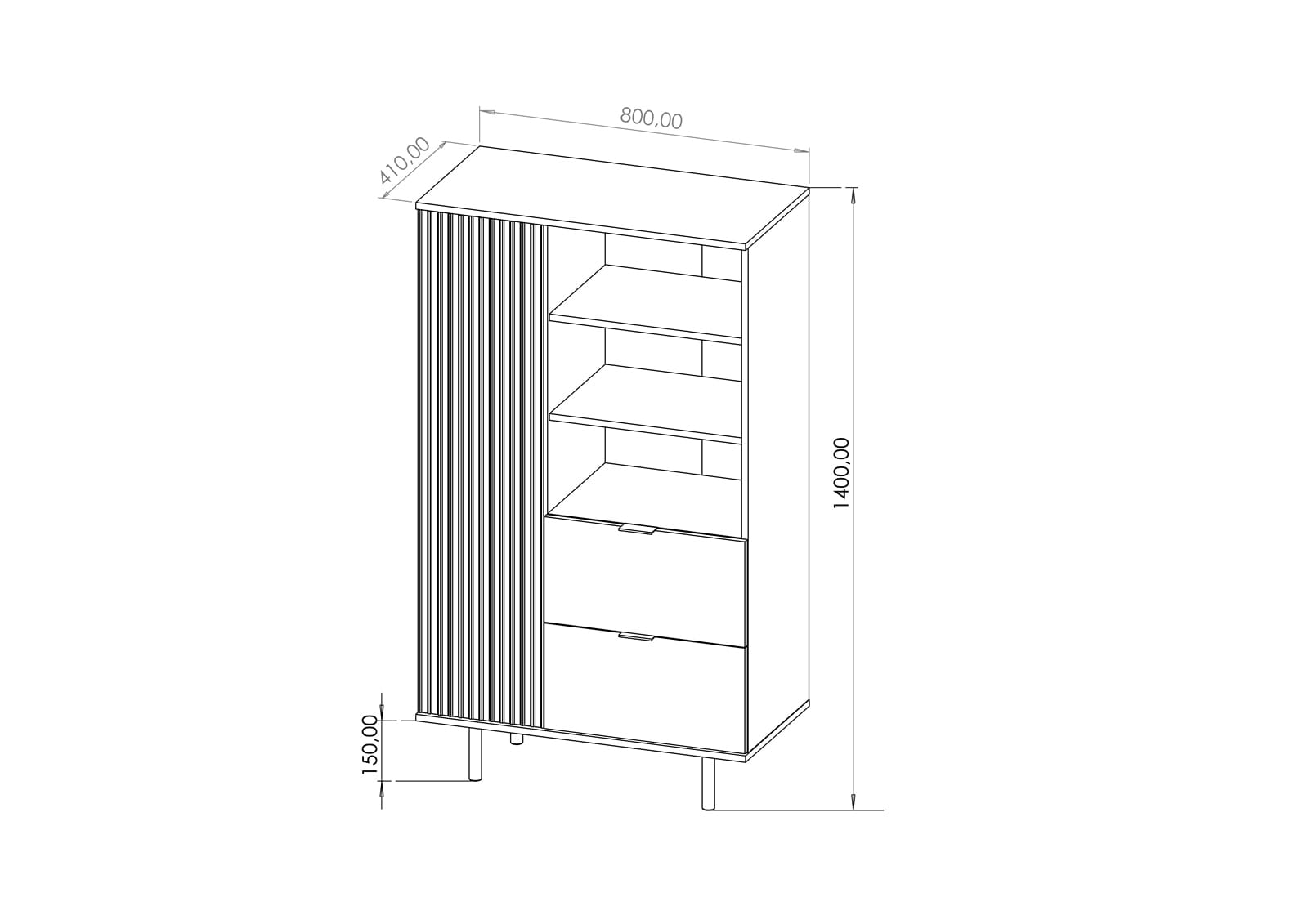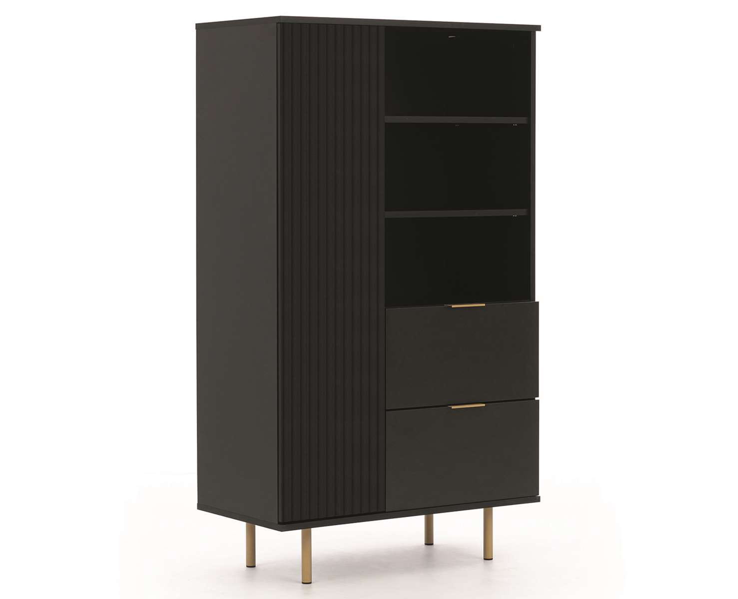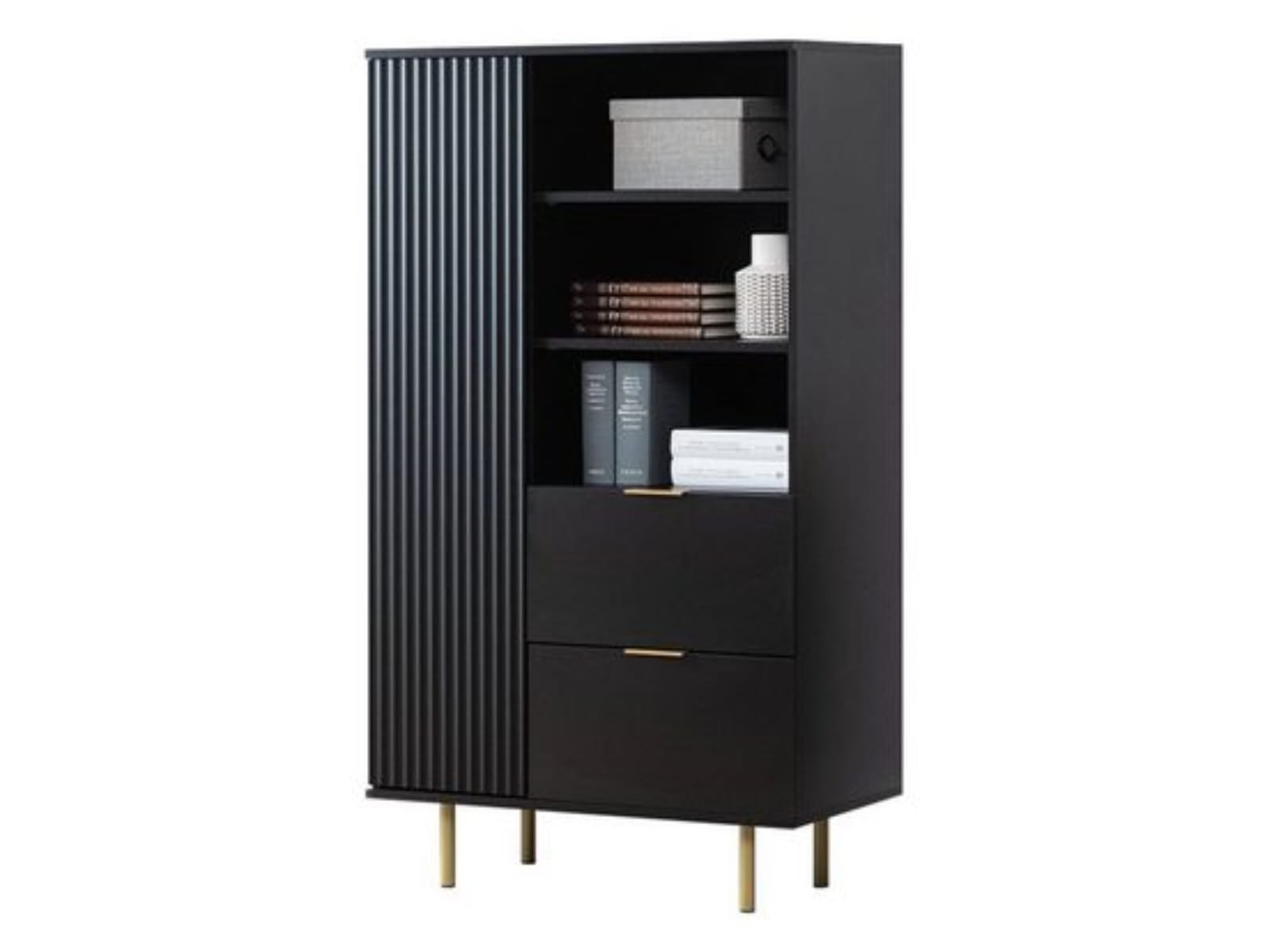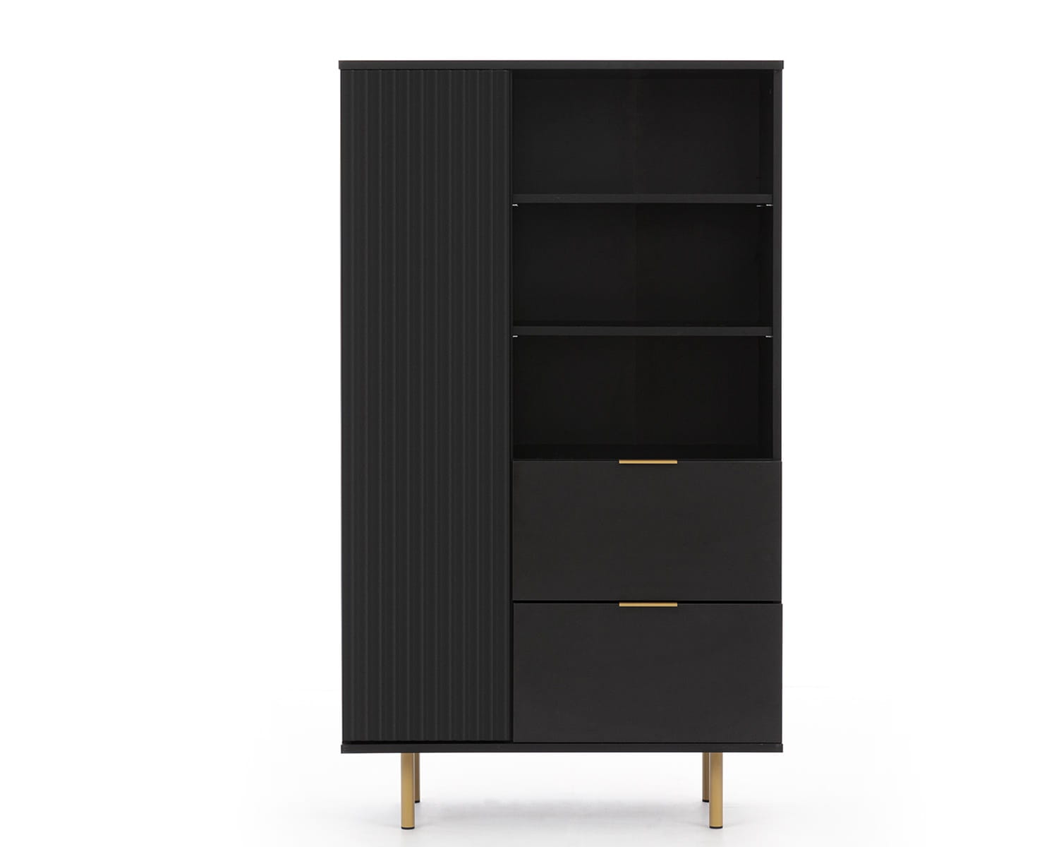 Ryflowany regał z szufladami do salonu CALO CZARNY + ZŁOTY