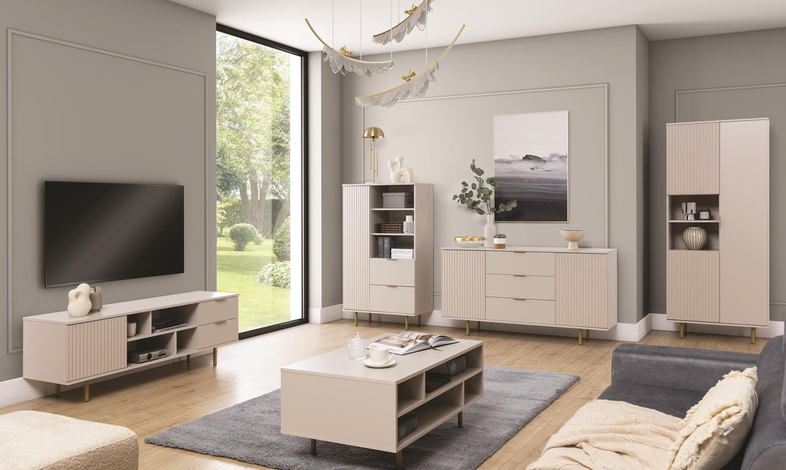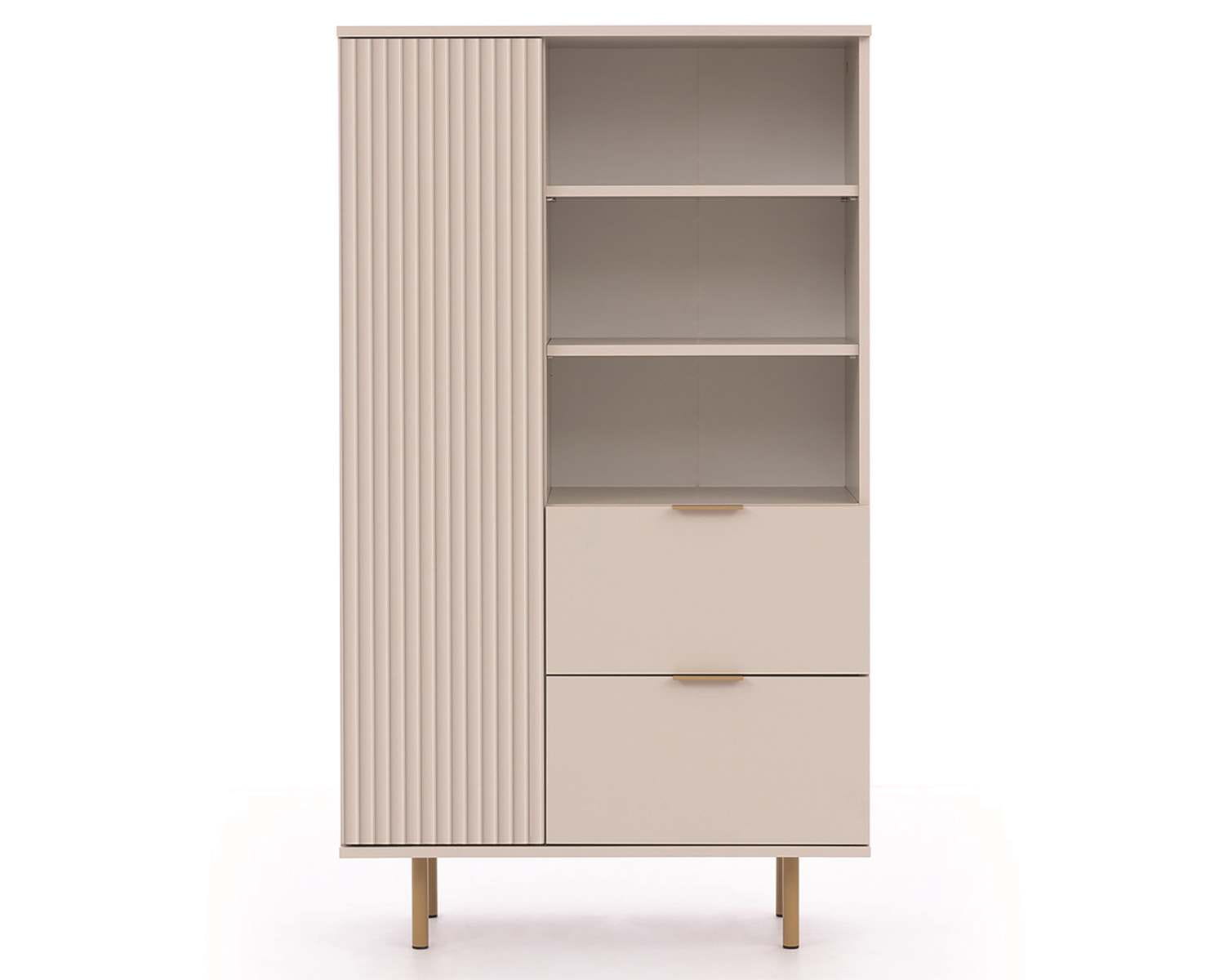 Ryflowany regał z szufladami do salonu CALO KASZMIR + ZŁOTY