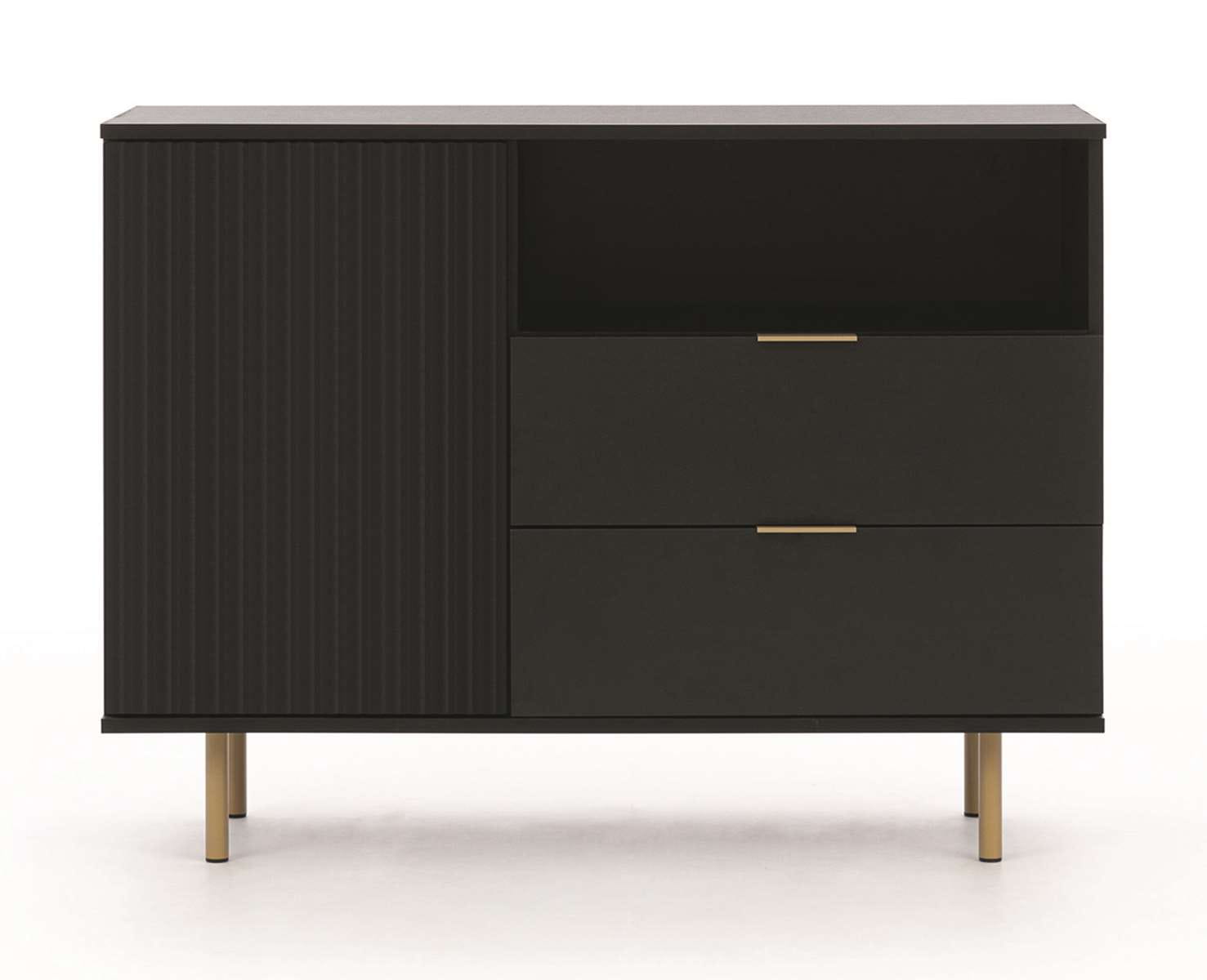 Wąska komoda do przedpokoju z lamelami CALO CZARNY ZŁOTY