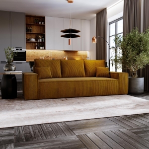 Pomarańczowa kanapa do salonu MALO SZTRUKS