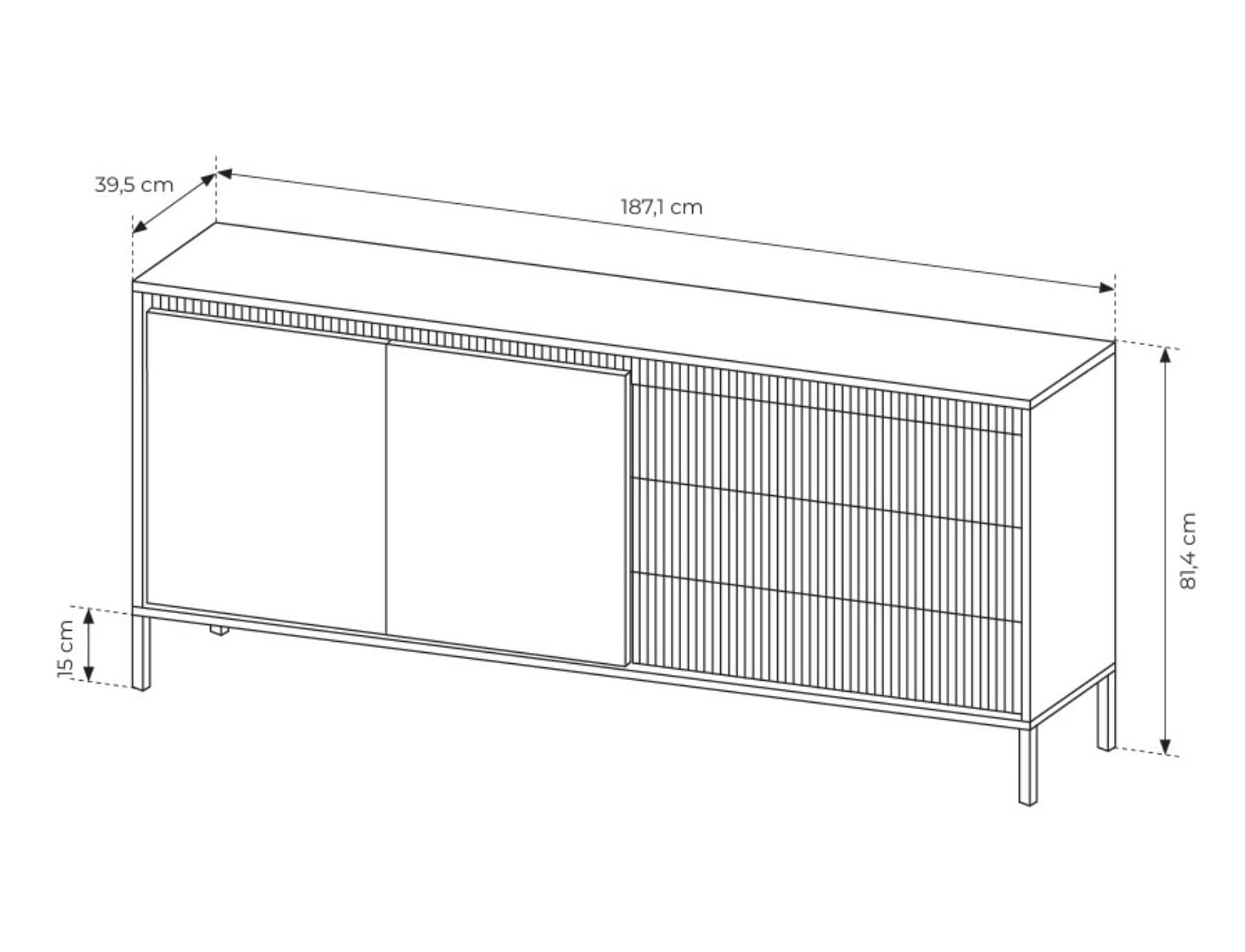 Komoda ryflowana z szufladami do sypialni GAVINS