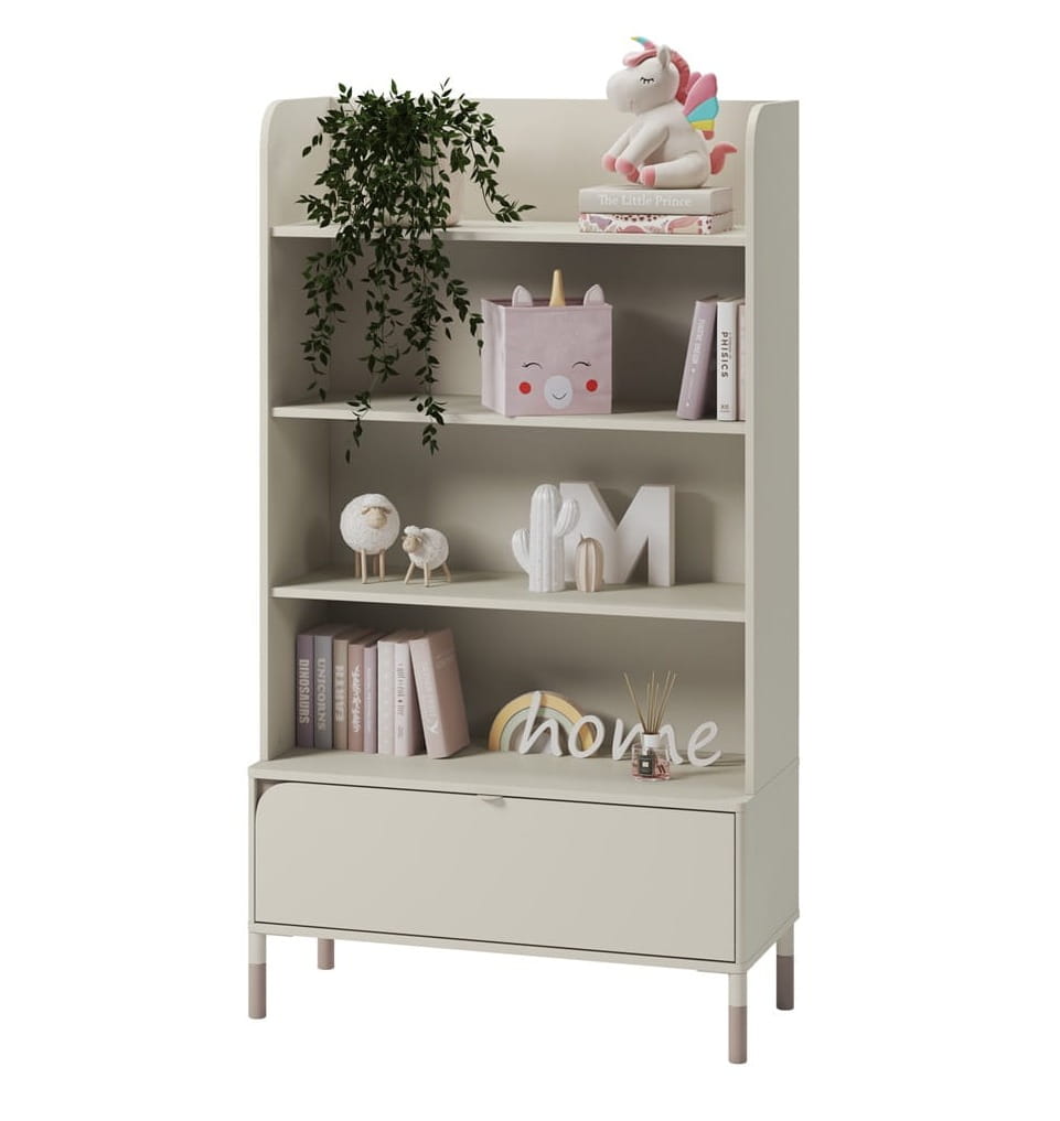 Praktyczny regał kaszmirowy do pokoju dziecięcego z szufladą JUNA