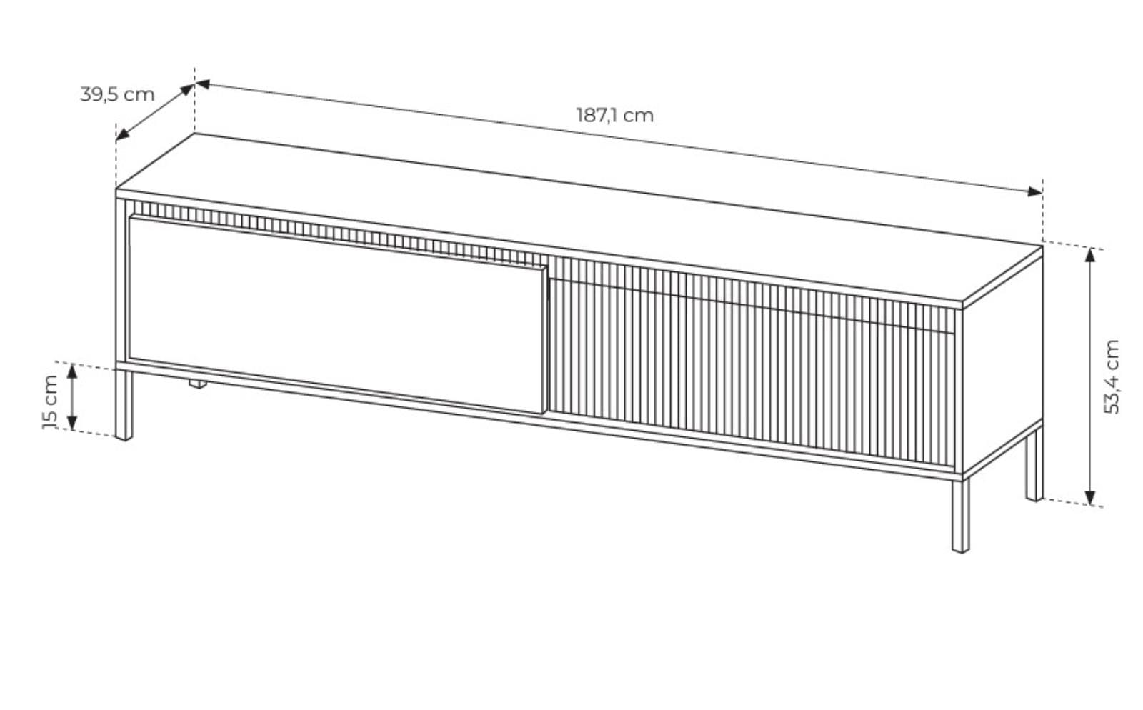 Szafka RTV GAVINS BEŻ to połączenie nowoczesnego designu z praktycznością, które doskonale wpisuje się w potrzeby współczesnych wnętrz. Wykonana z wysokiej jakości materiałów, wyróżnia się eleganckim ryflowanym frontem, który nadaje jej unikalnego charakteru i subtelnie przyciąga uwagę.