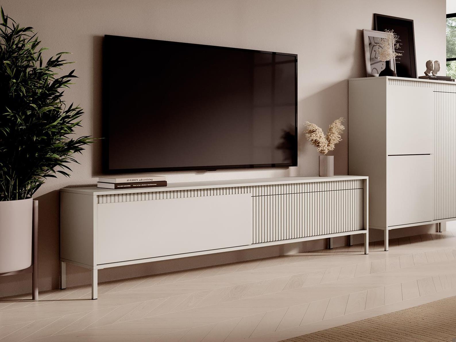 Szafka RTV pod telewizor z ryflowanym frontem GAVINS BEŻ