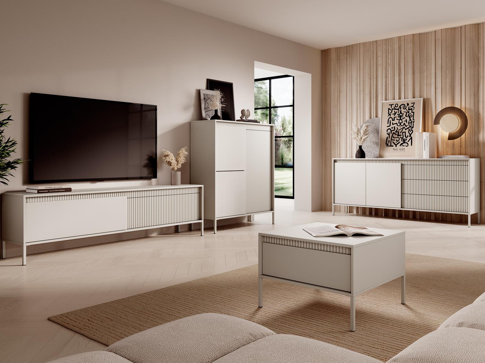 Ryflowany stolik pod telewizor GAVINS BEŻ