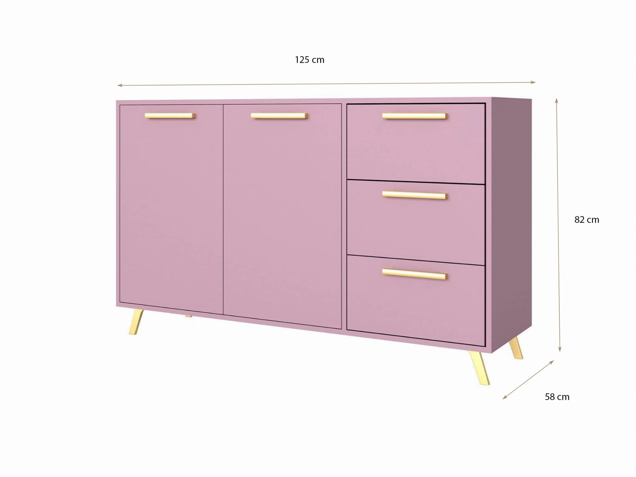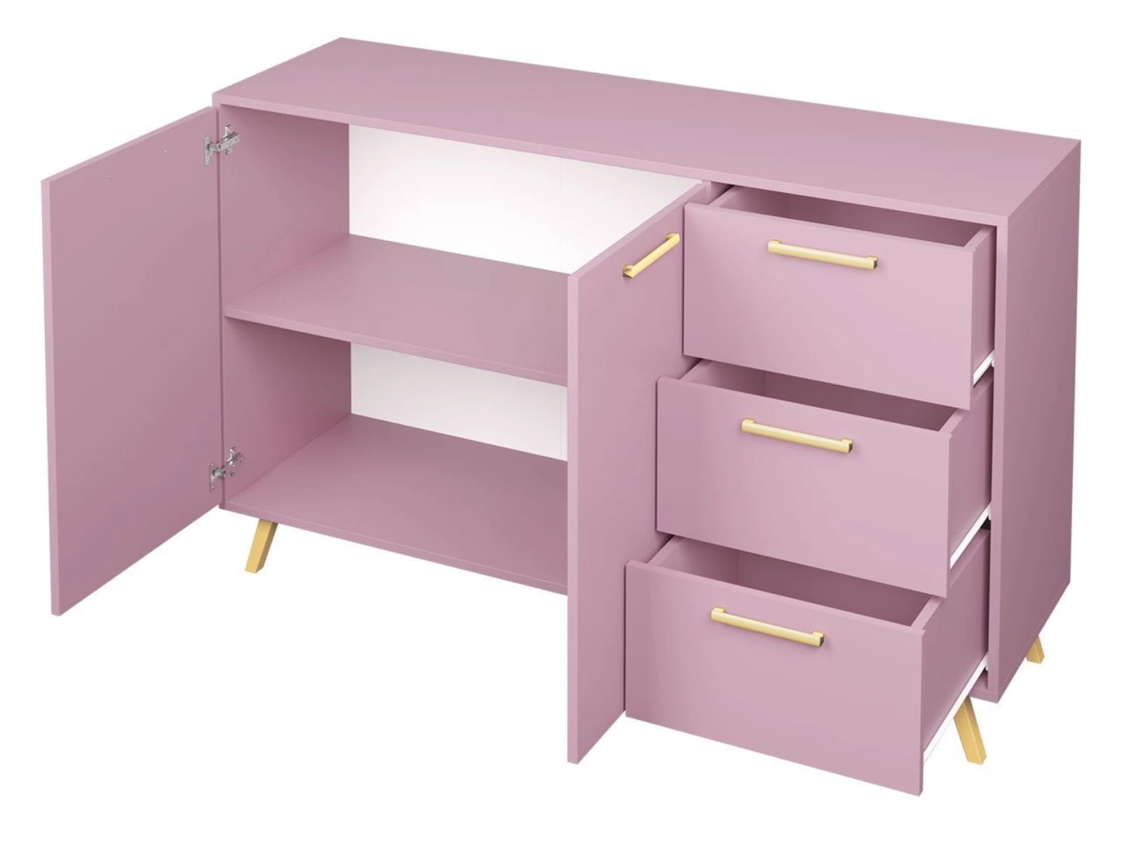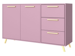 Śliwkowa komoda ze złotymi uchwytami do pokoju nastolatki BONO