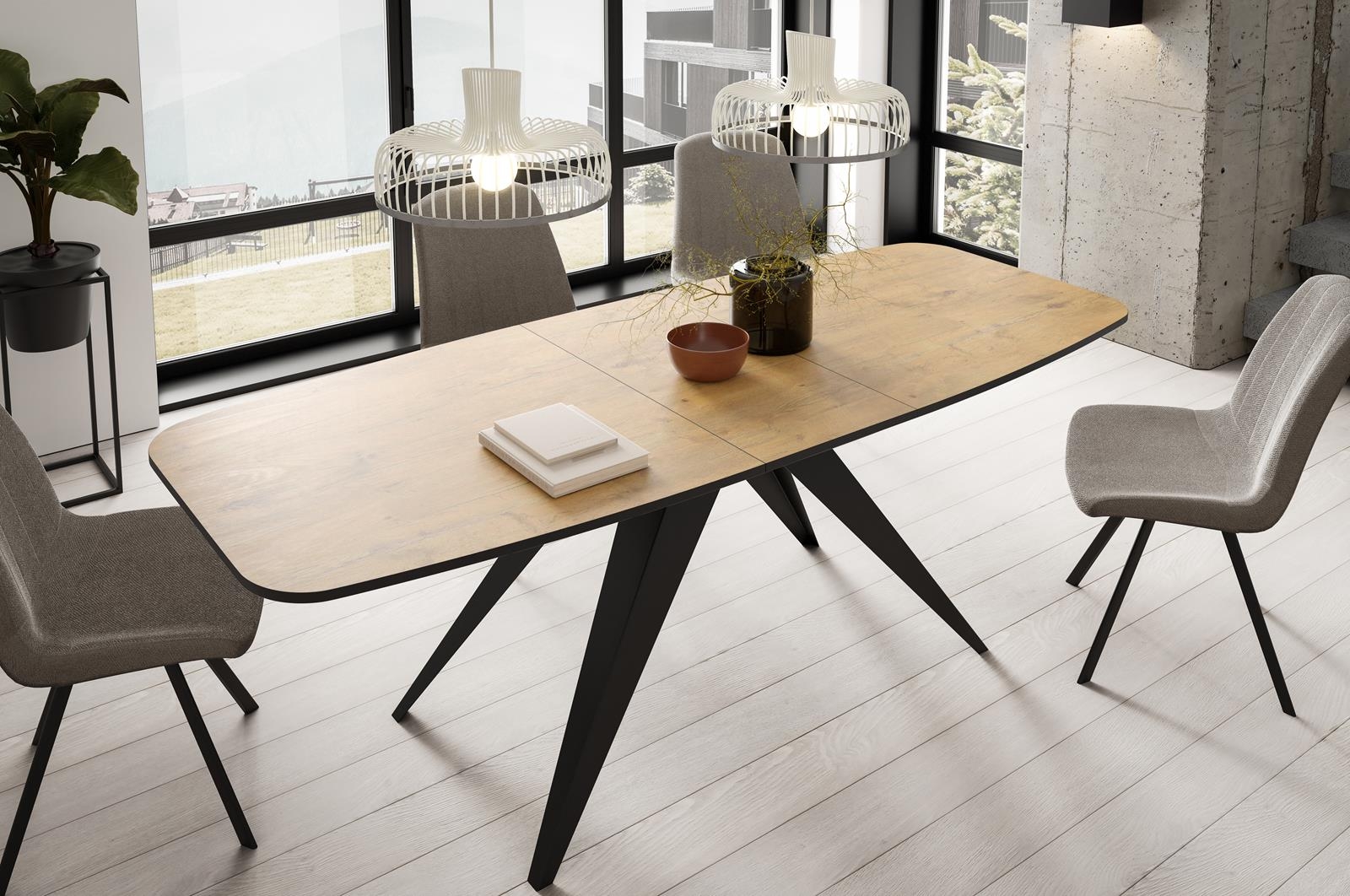 Stół rozkładany na czarnych nogach dąb craft do jadalni CARRINGTON