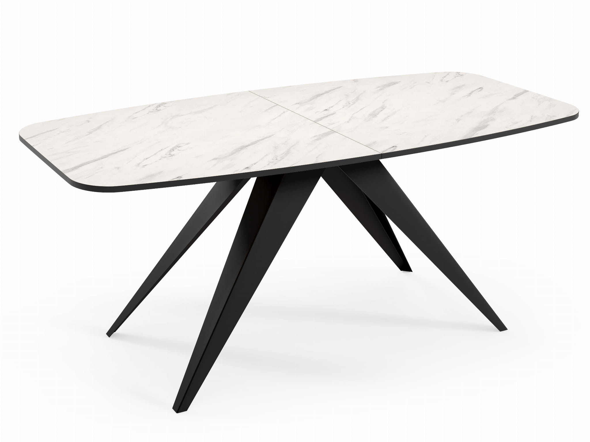 Rozkładany stół jadalniany blat biały marmur 180-220 cm na nogach czarnych