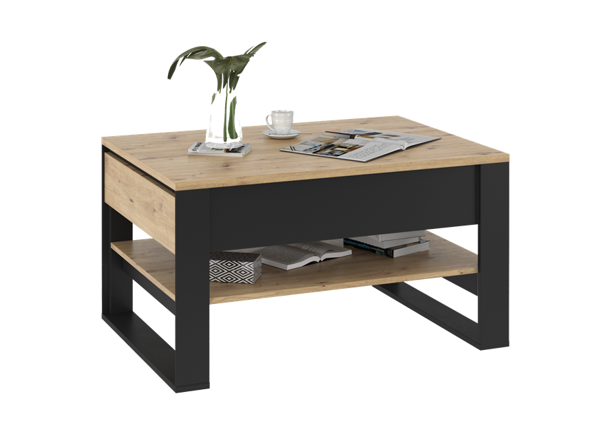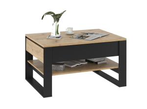 Stolik kawowy z tej kolekcji to idealne połączenie funkcjonalności i nowoczesnego designu w stylu loftowym. Utrzymany w dekorze dąb artisan, wyróżnia się prostokątnym blatem, który zapewnia wygodną przestrzeń do codziennego użytkowania - od spotkań przy kawie po rodzinne chwile w salonie.