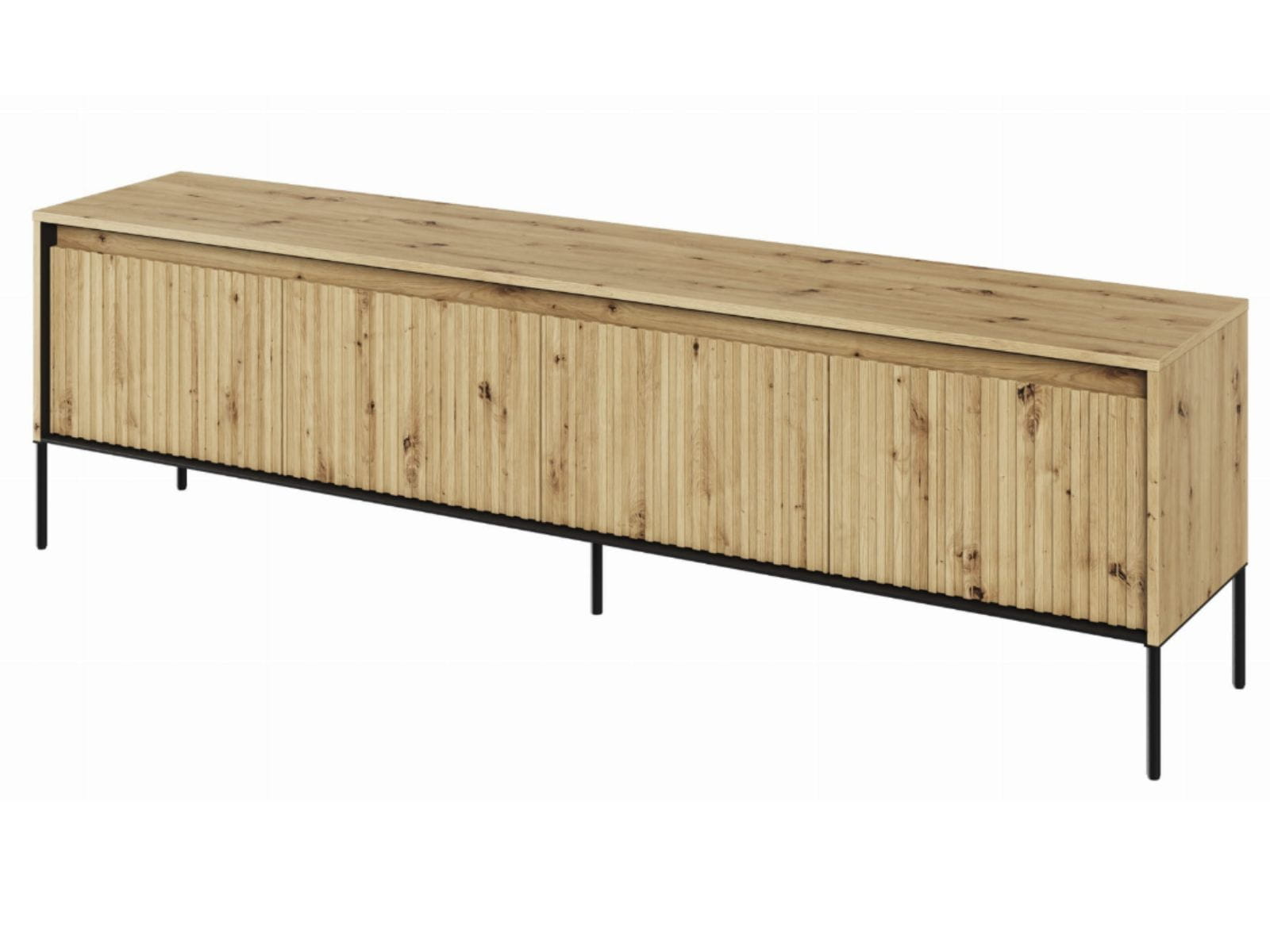 Stolik pod telewizor dąb artisan loftowy z ryflowanym frontem FLORES