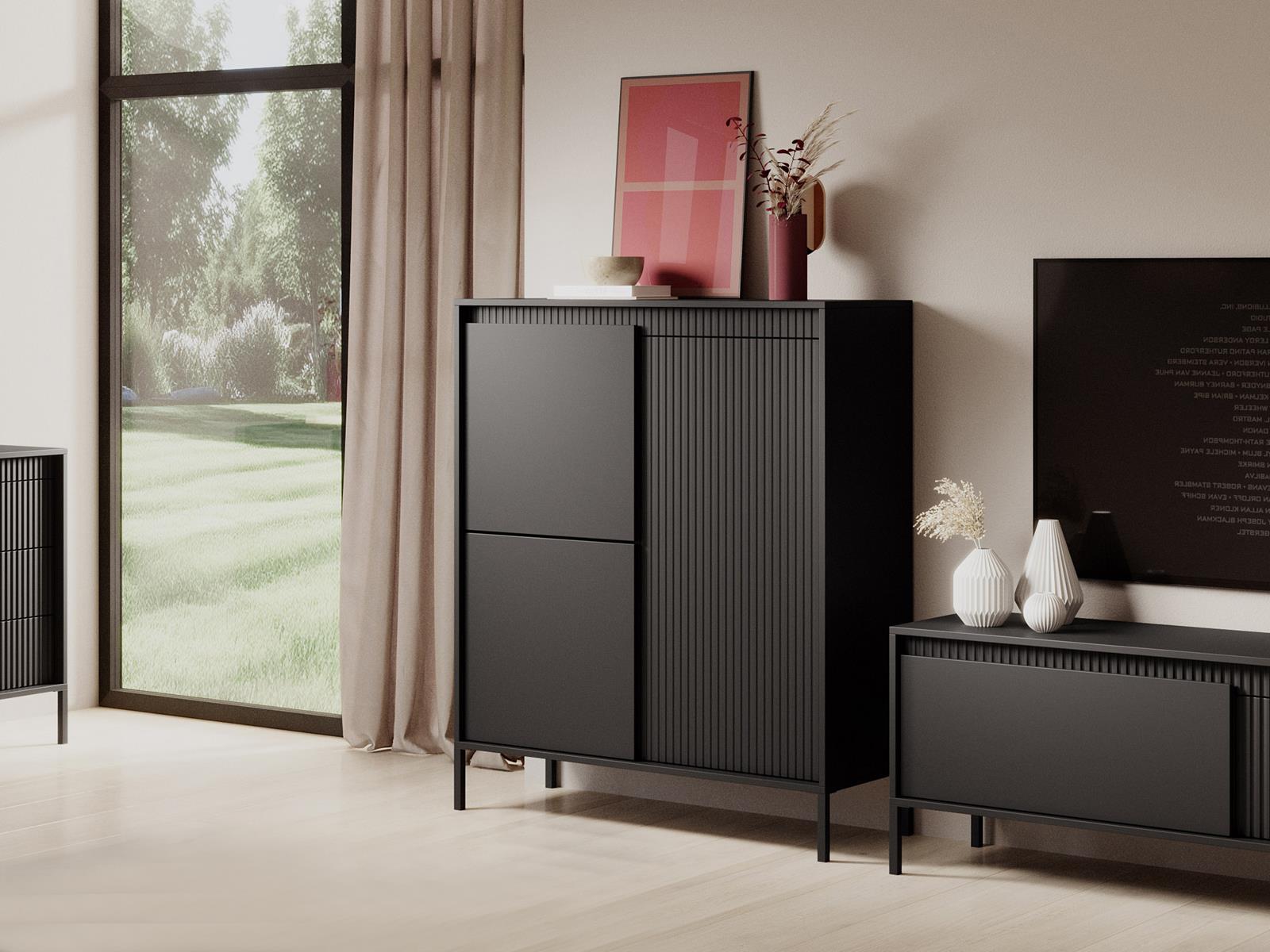 Stylowa ryflowana komoda do salonu GAVINS CZARNA