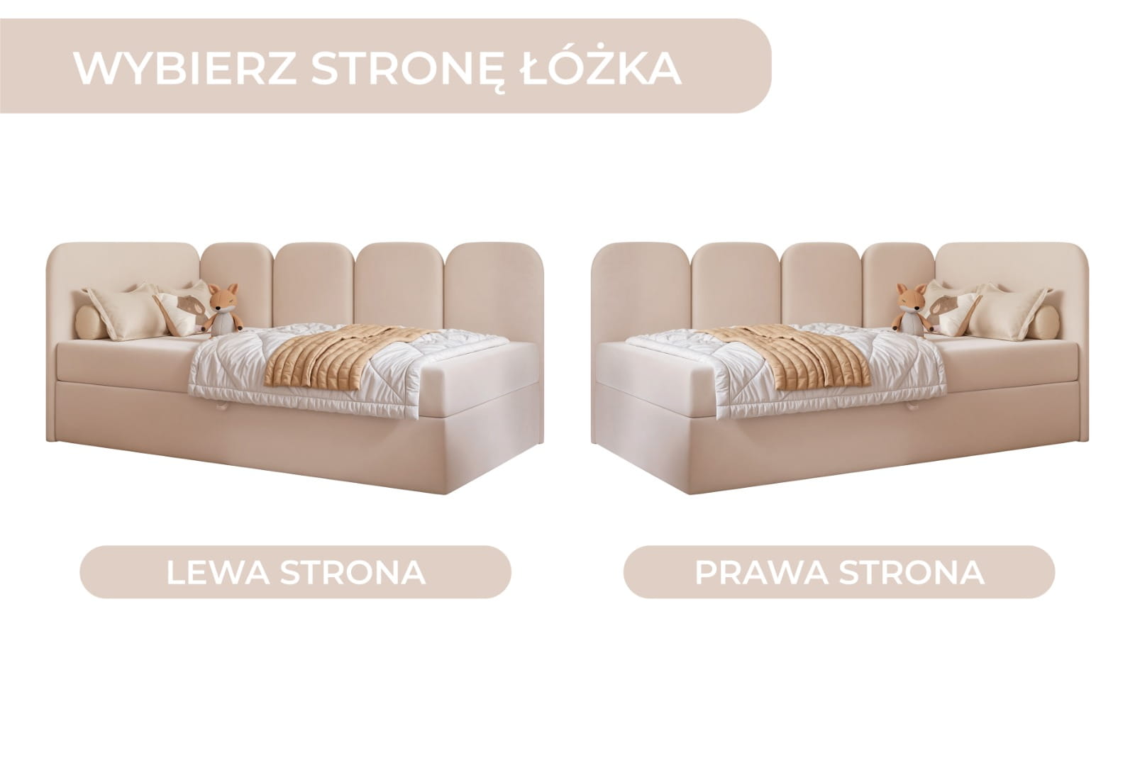 Stylowe beżowe łóżko dziecięce w welurowej tkaninie DREAMY