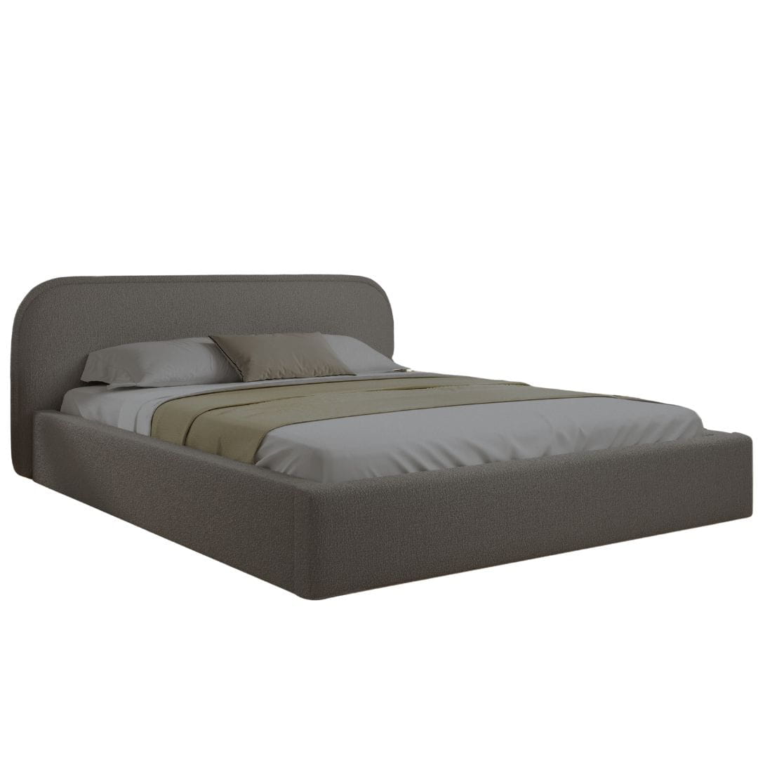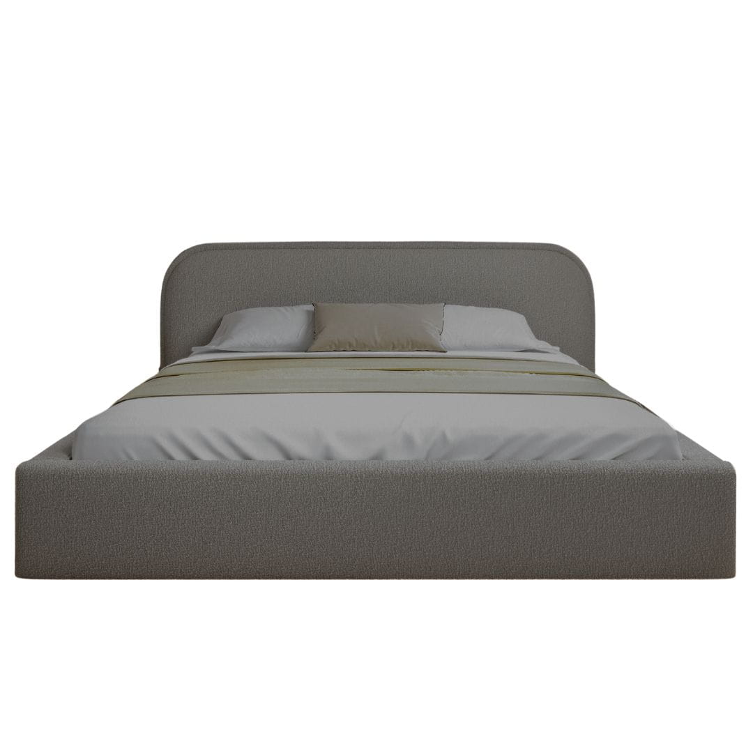 Eleganckie łóżko tapicerowane z miękkim obiciem w tkaninie bouclé