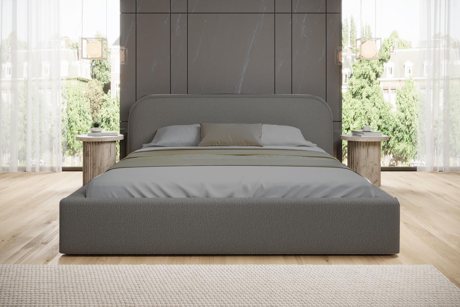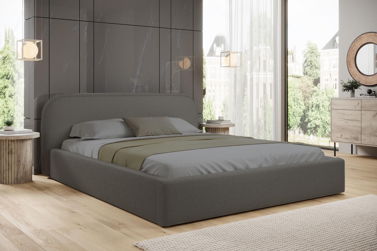 Stylowe grafitowe łóżko tapicerowane tkanina boucle RONDIS