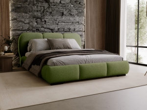 Stylowe łóżko tapicerowane w kolorze oliwkowym tkanina boucle COSE