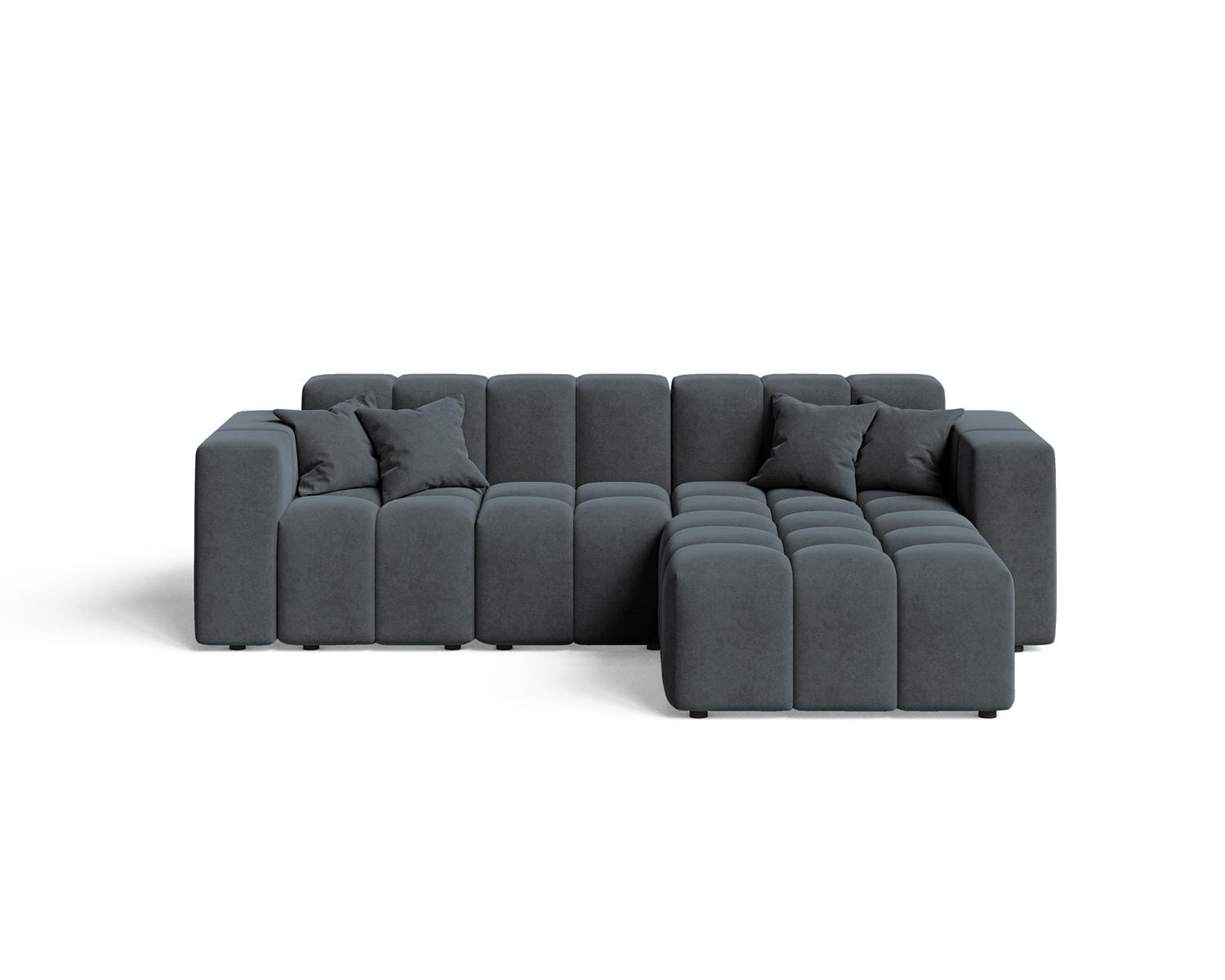 Tkanina Komodo to połączenie miękkości i trwałości. Jej gęsta struktura i delikatny połysk dodają narożnikowi elegancji, a grafitowy kolor sprawia, że wnętrze staje się eleganckie, przytulne i pełne harmonii.