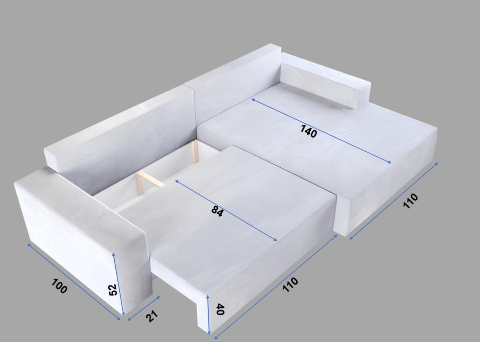 Funkcja spania - rozkładany narożnik z powierzchnią aż 155 × 200 cm - idealny do spania