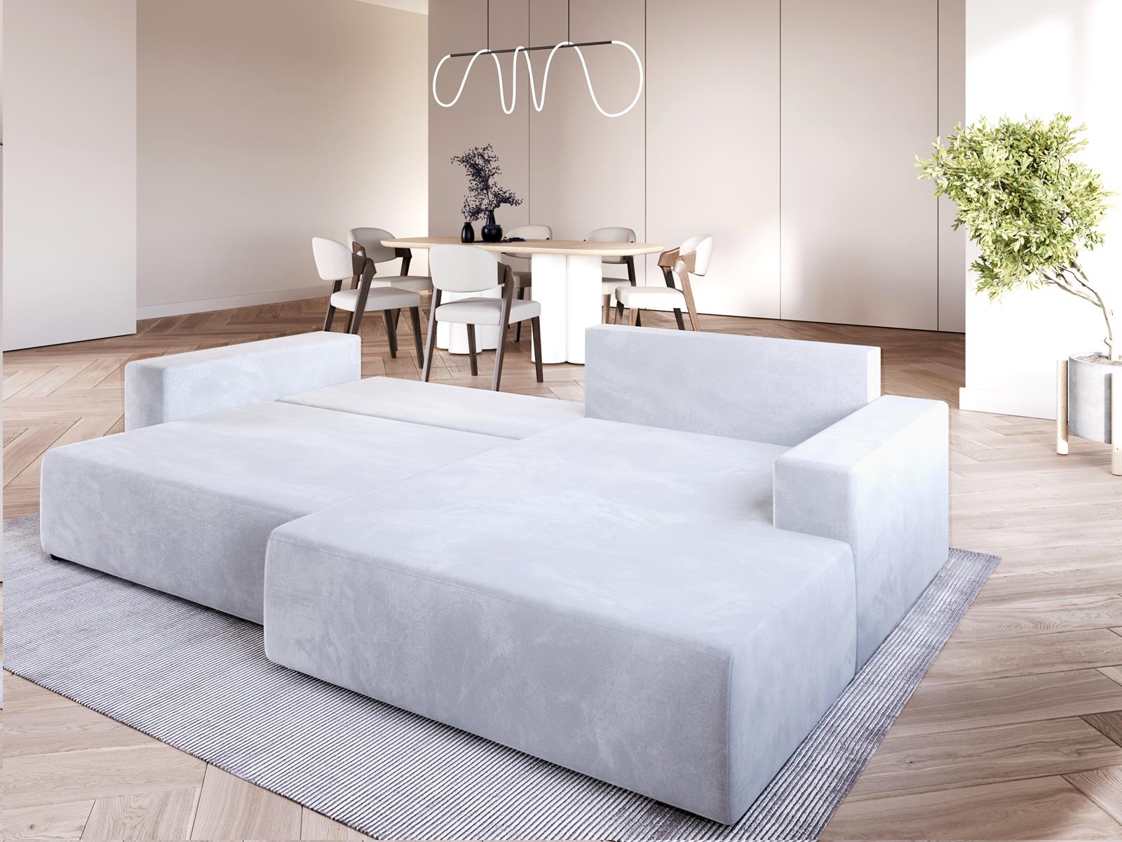 Narożnik został tapicerowany tkaniną MANILA - eleganckim welurem o miękkiej, przyjemnej